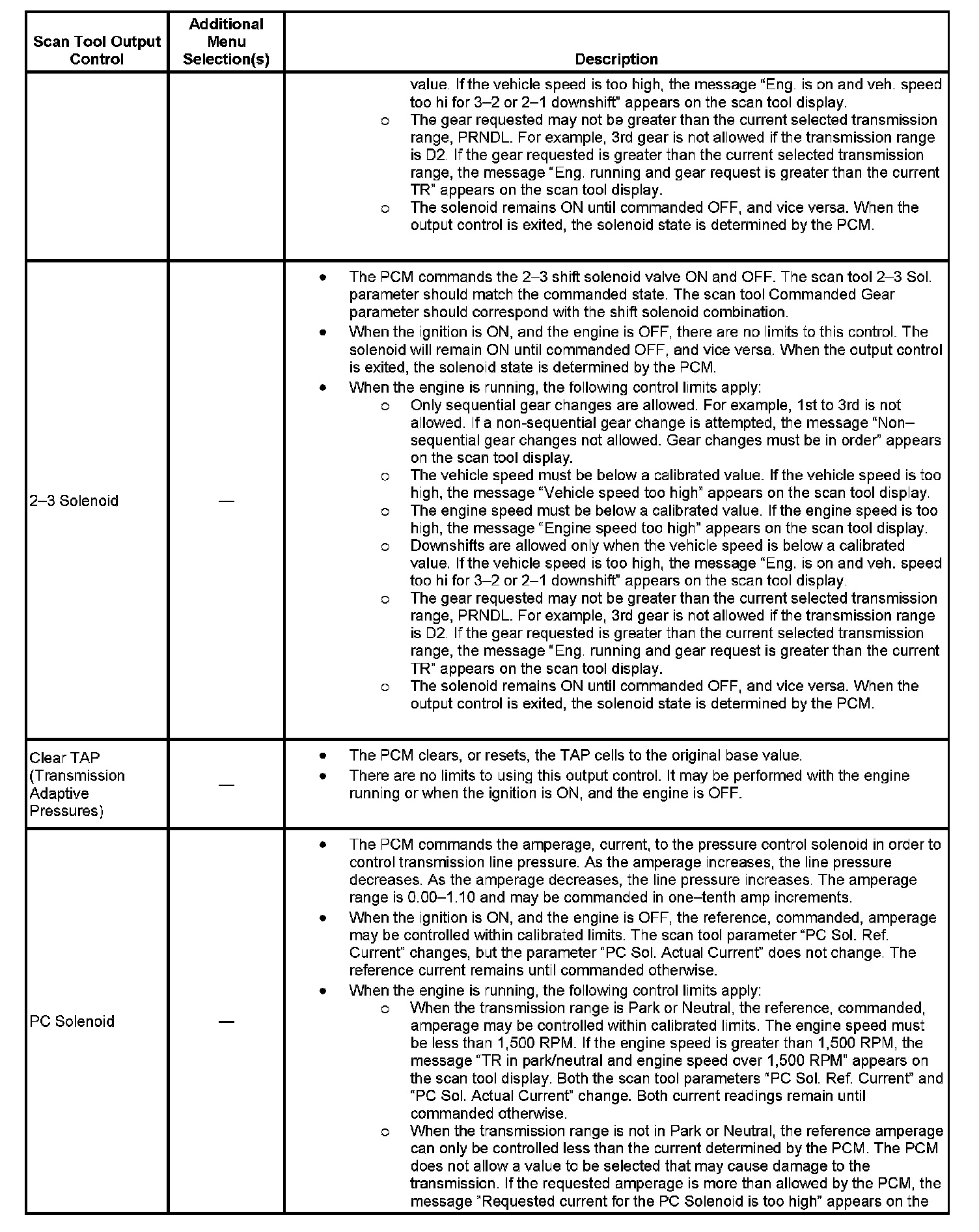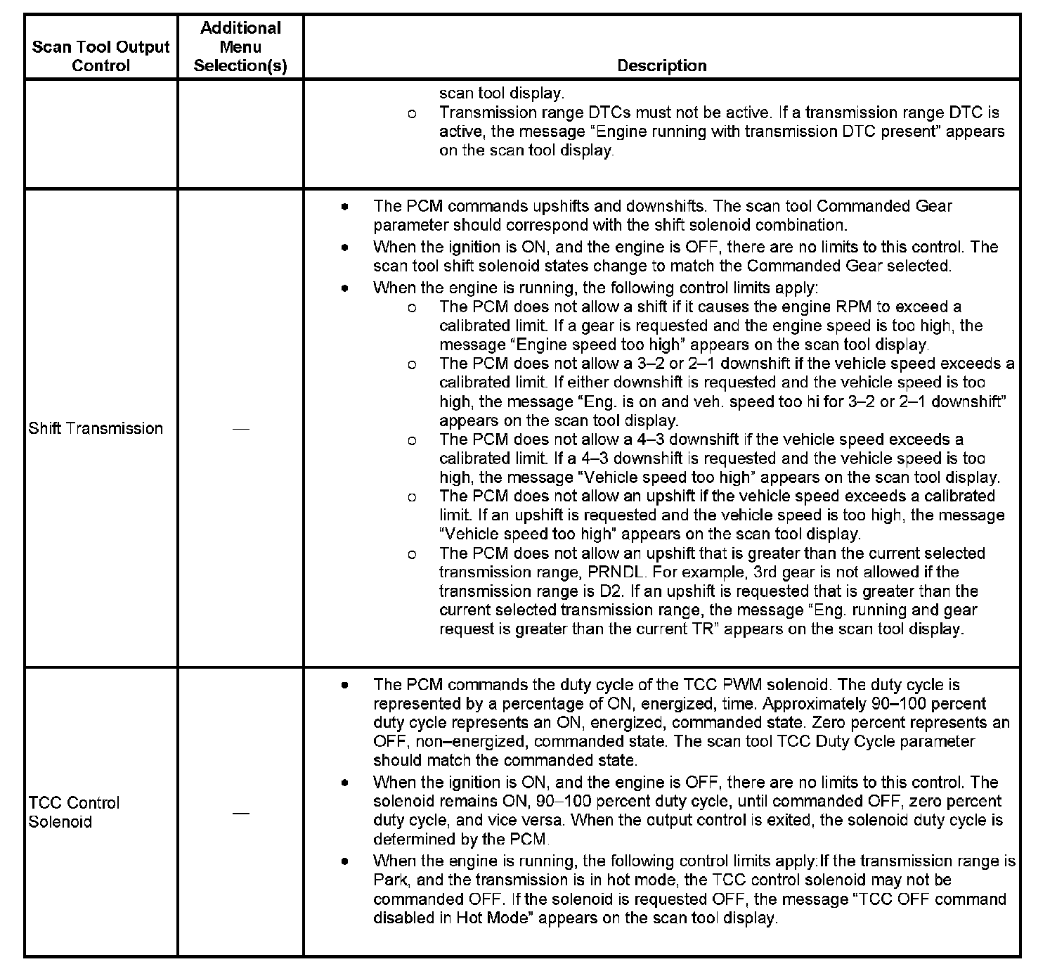 Scan Tool Output Controls