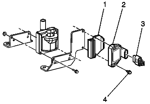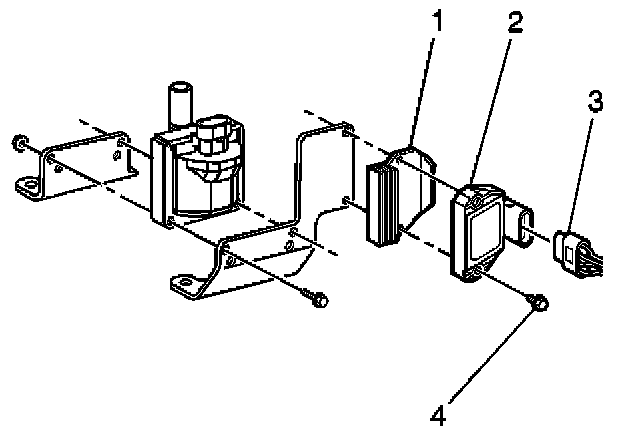 3. Remove the screws (4) holding the ignition control module (2) and the heat sink (1) to the bracket.