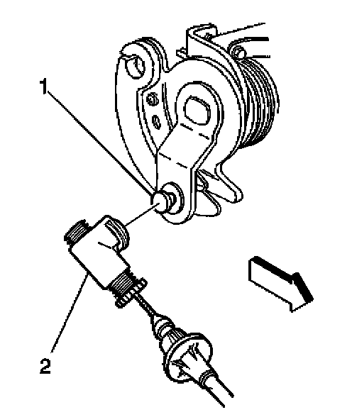 8. Connect the cruise control cable end (2) to the throttle linkage (1).