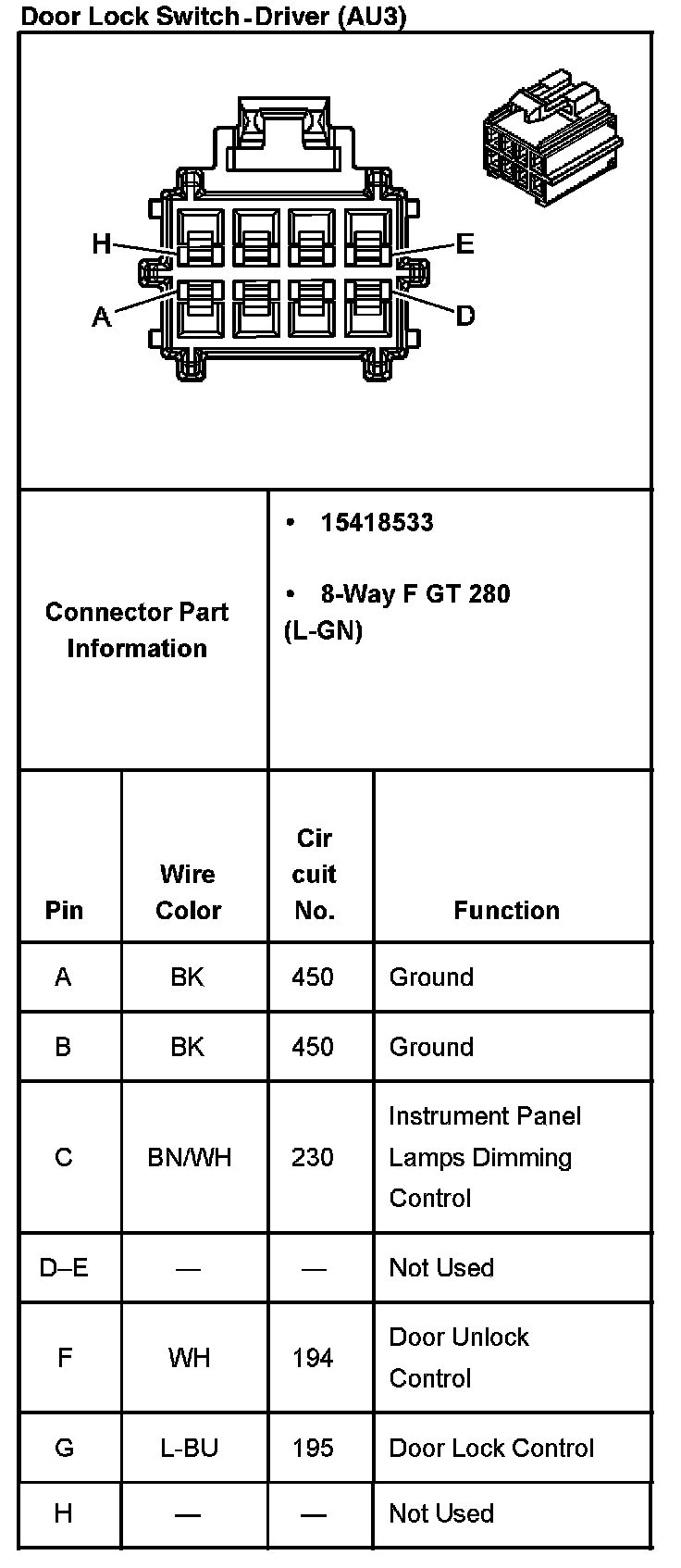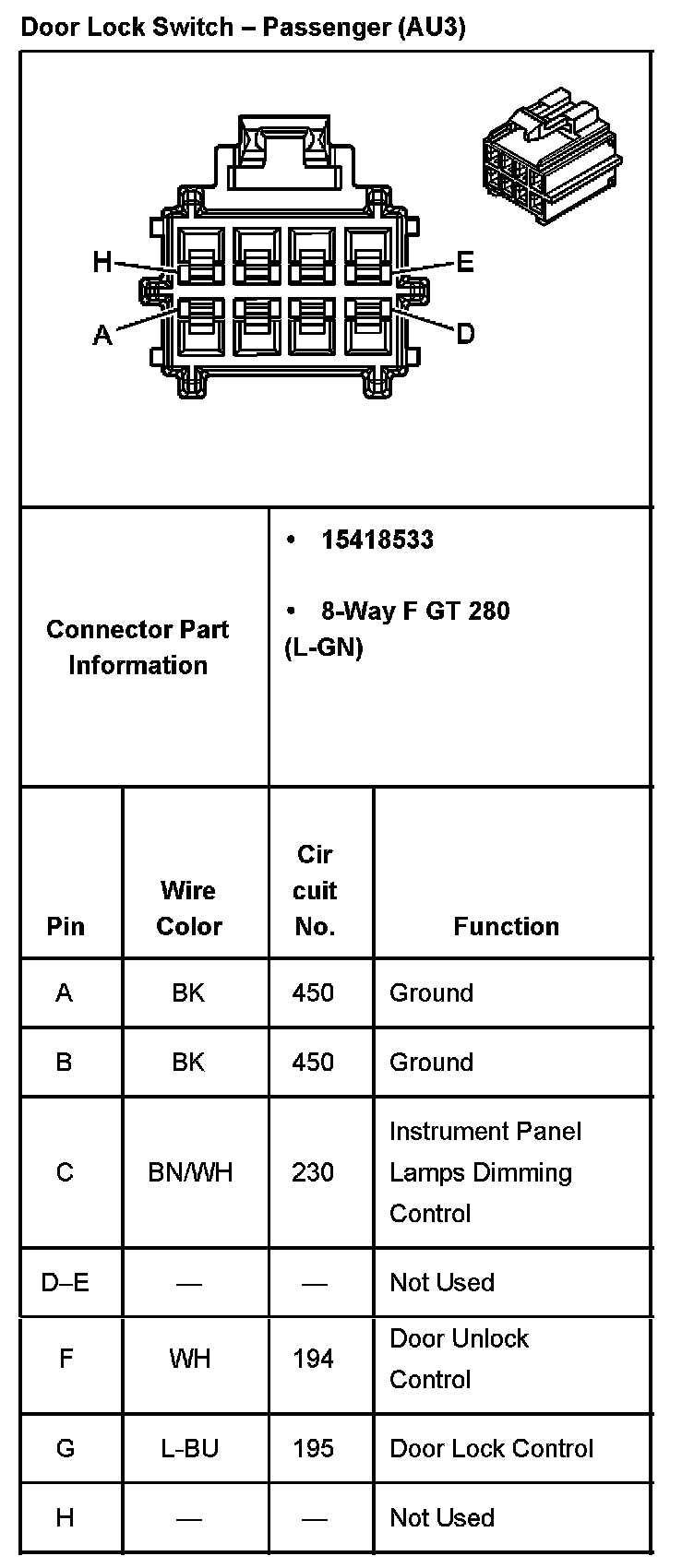 Door Lock Switch - Driver (With RPO Code AU3):