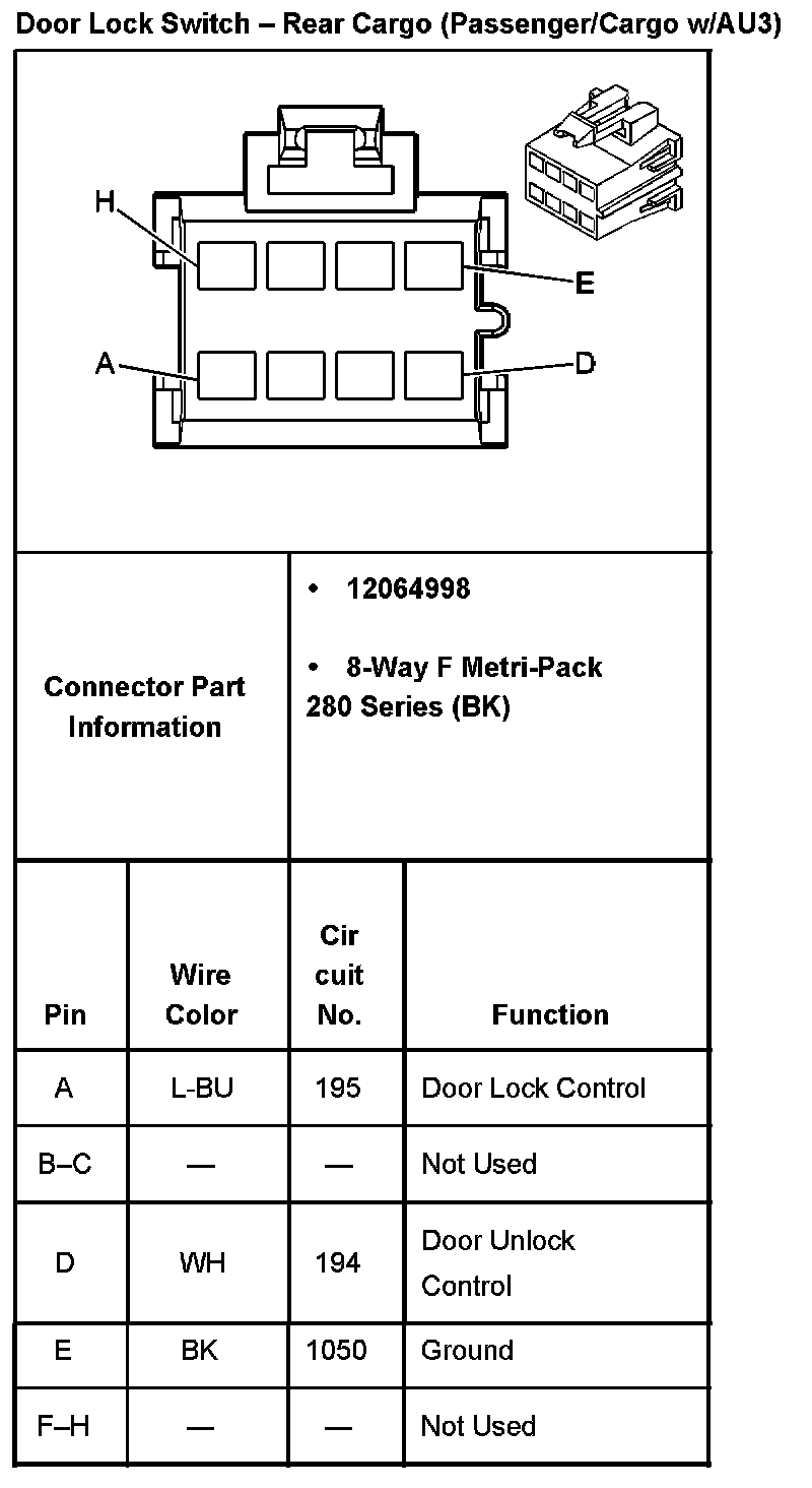 Door Lock Switch - Rear Cargo (Passenger/Cargo With RPO Code AU3):