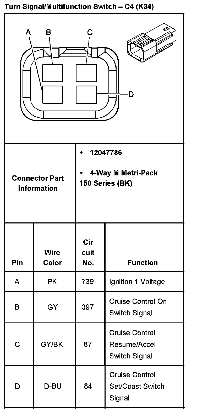 Turn Signal/Multifunction Switch - C4 (With RPO Code K34):
