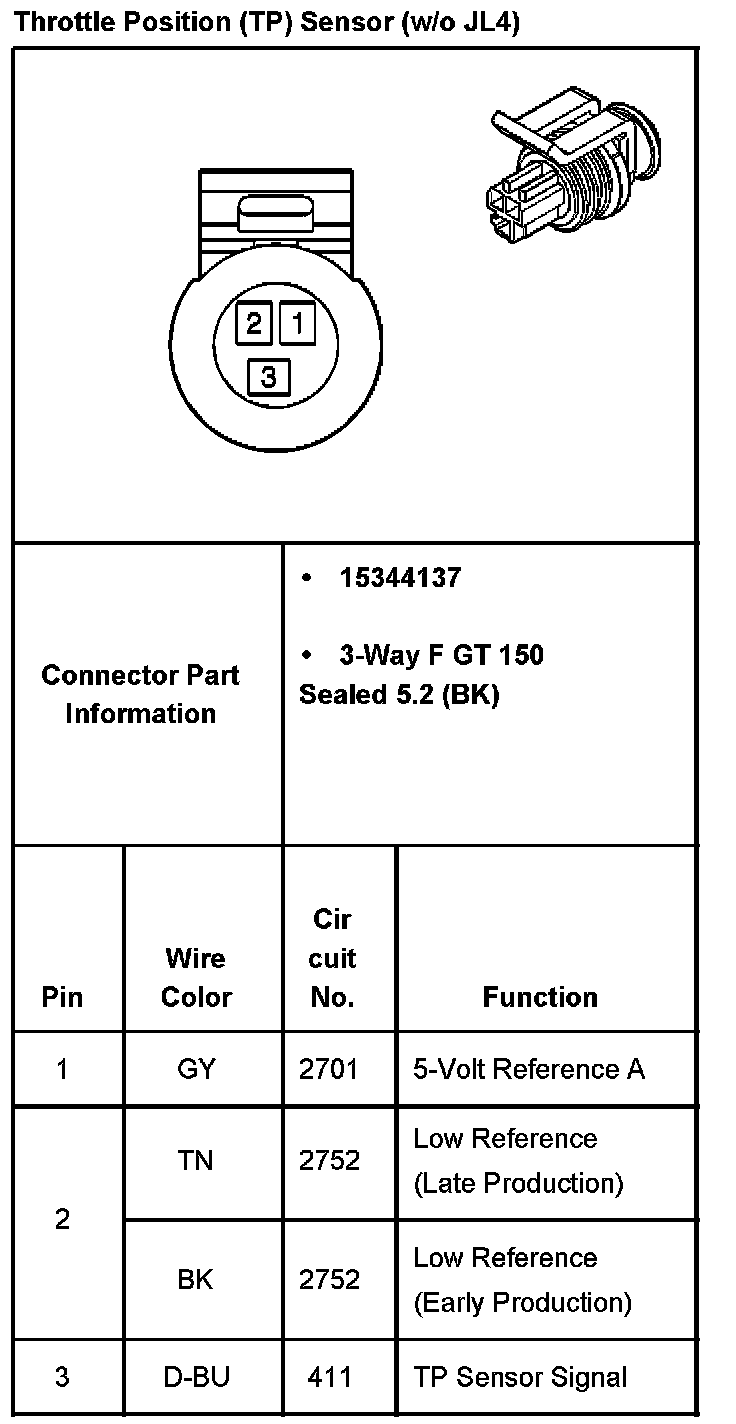 Throttloe Position (TP) Sensor (Without RPO Code JL4):