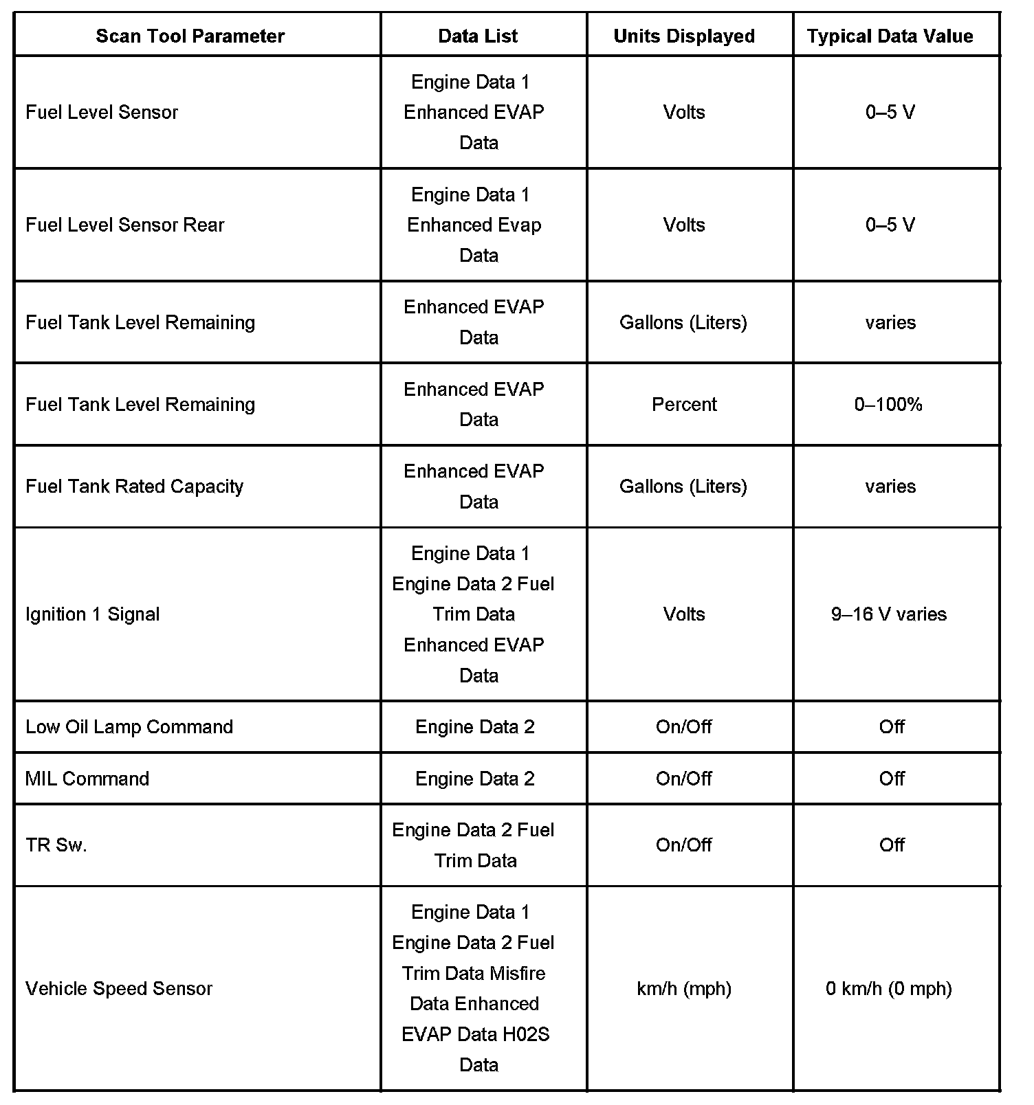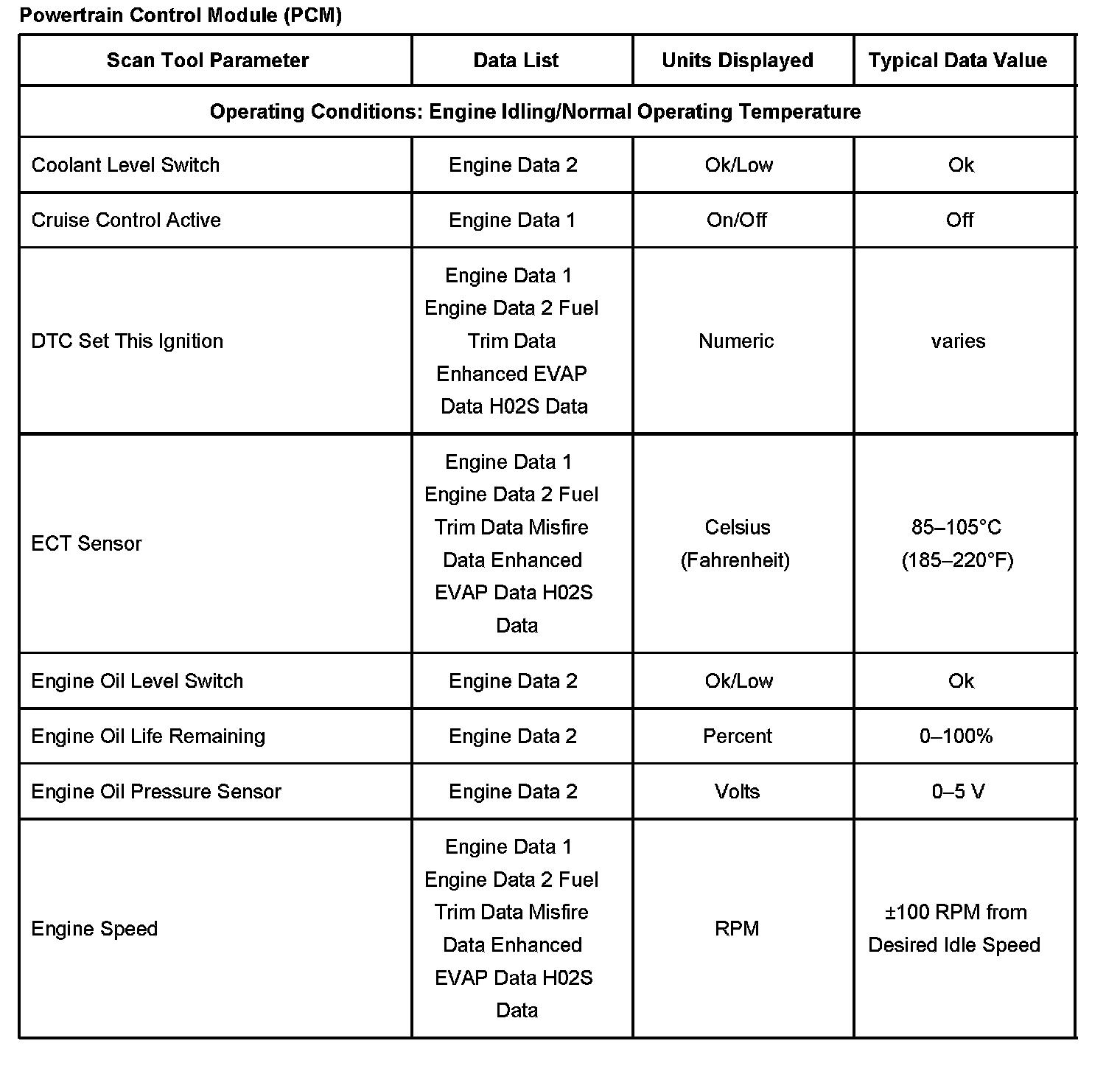 Scan Tool Data List - Powertrain Control Module (PCM)