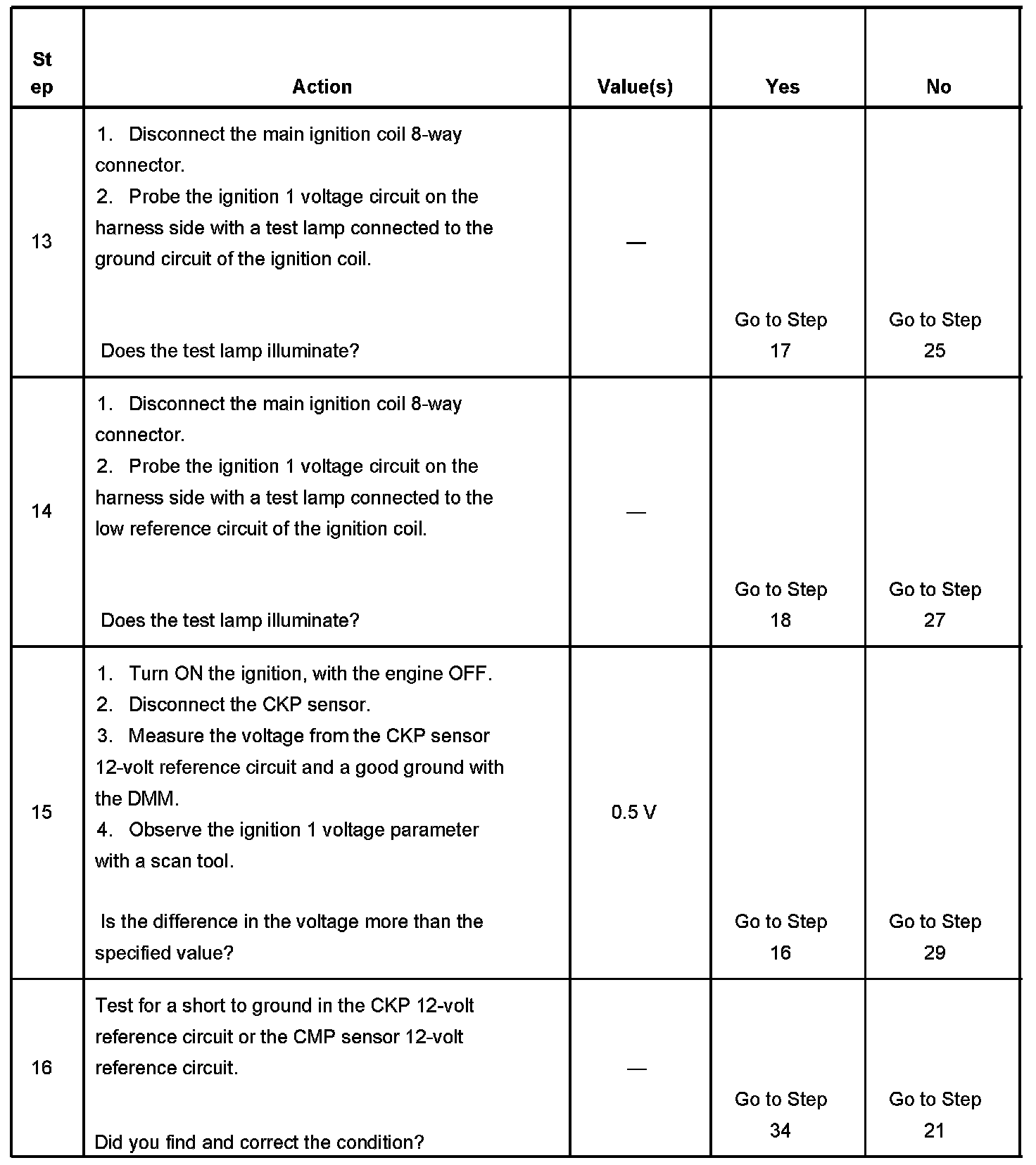The number below refers to the step number on the diagnostic table.