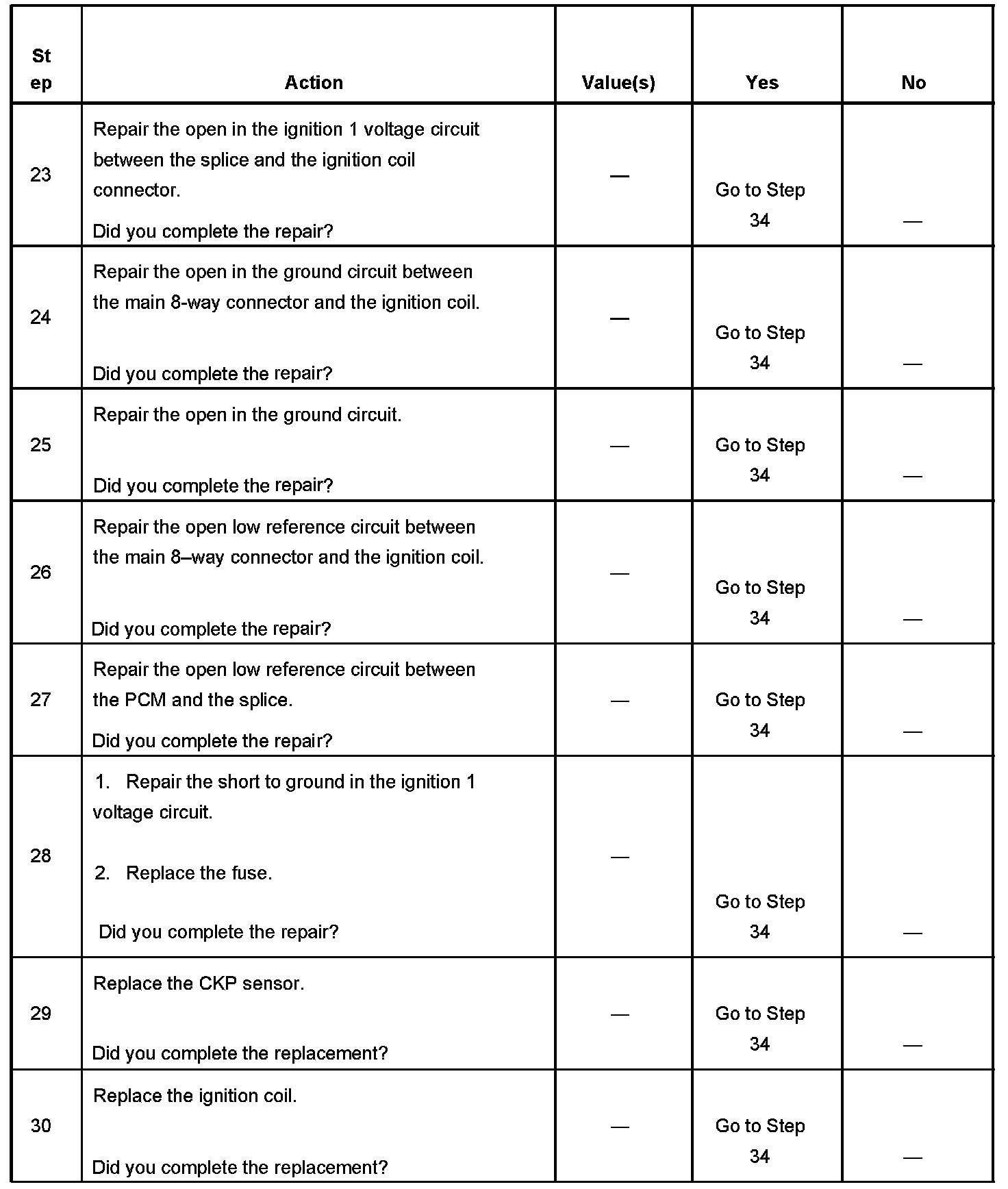 The PCM triggers an ignition coil by grounding the appropriate IC control using information from the crankshaft position (CKP) and camshaft position (CMP) sensors.