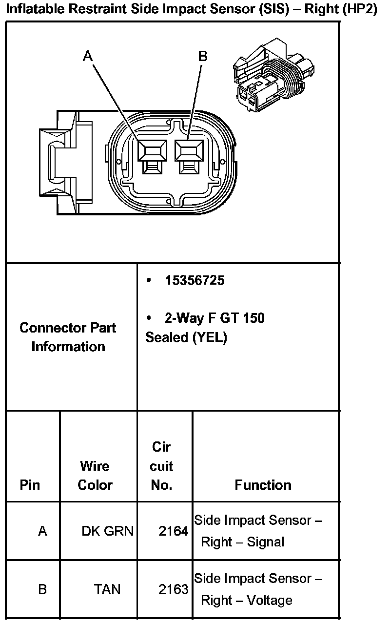 Inflatable Restraint Side Impact Sensor (SIS) - Right (With RPO Code HP2):