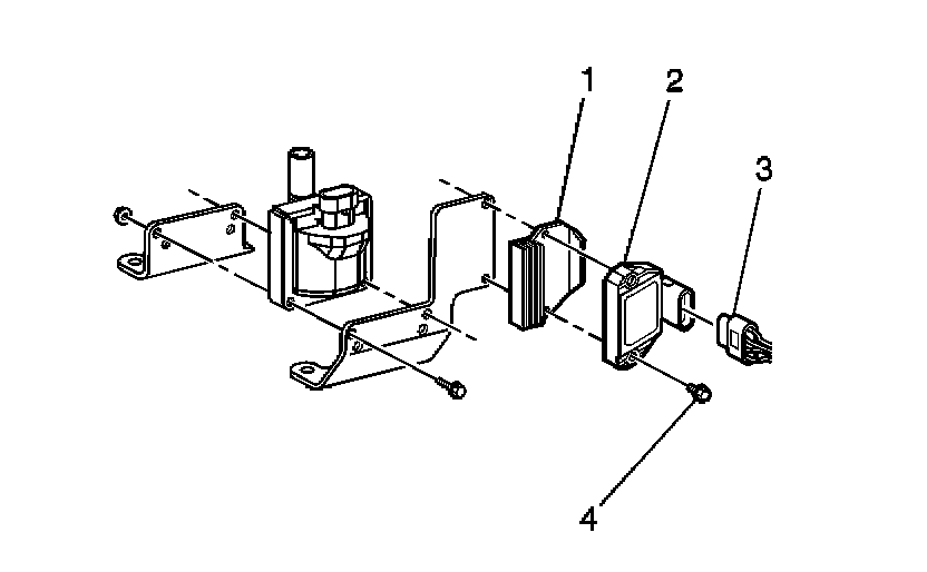 4. Remove the ignition control module (2) and heat sink (3).