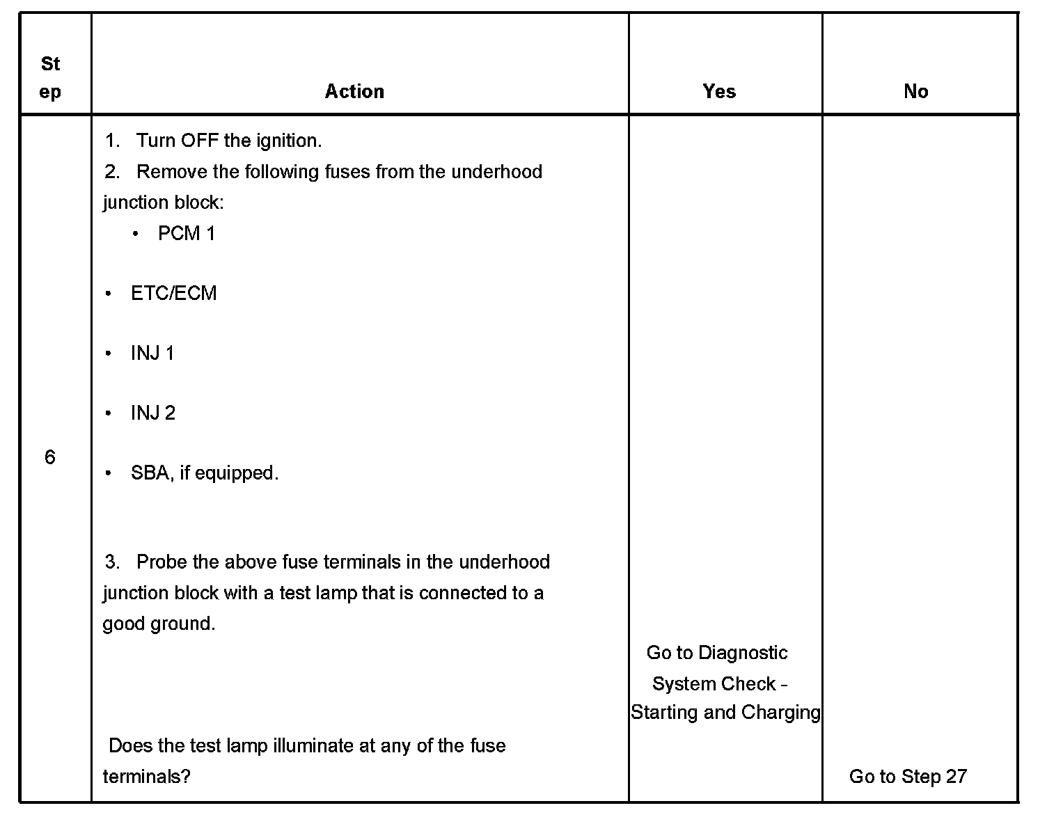 The ignition relay table assumes that the vehicle battery is fully charged.