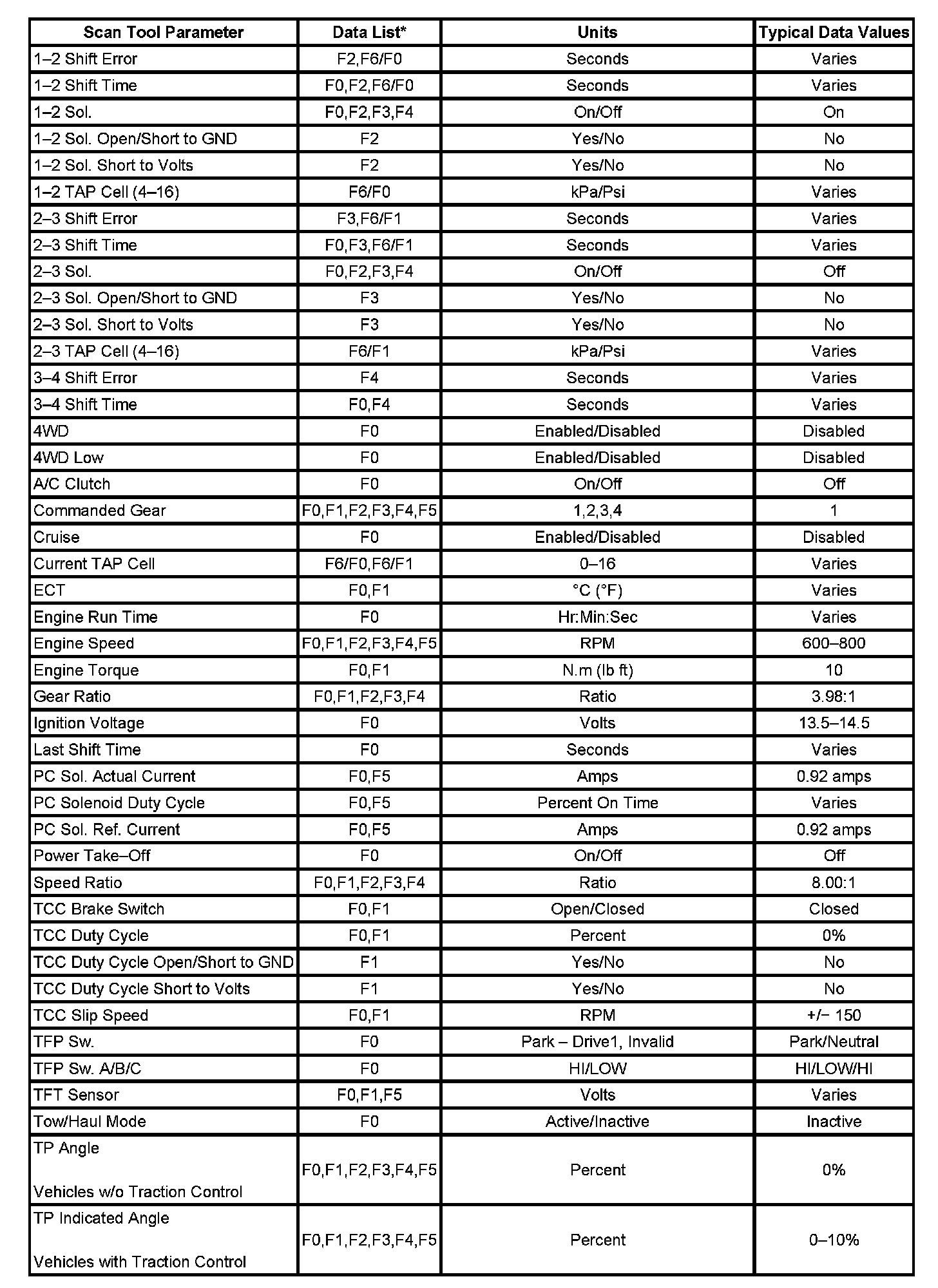 Transmission Scan Tool Data ListUse the Scan Tool Data List under the following conditions: