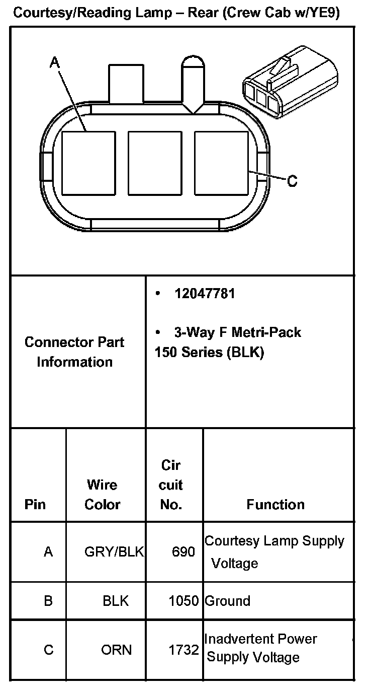 Courtesy/Reading Lamp - Rear (Crew Cab With RPO Code YE9):