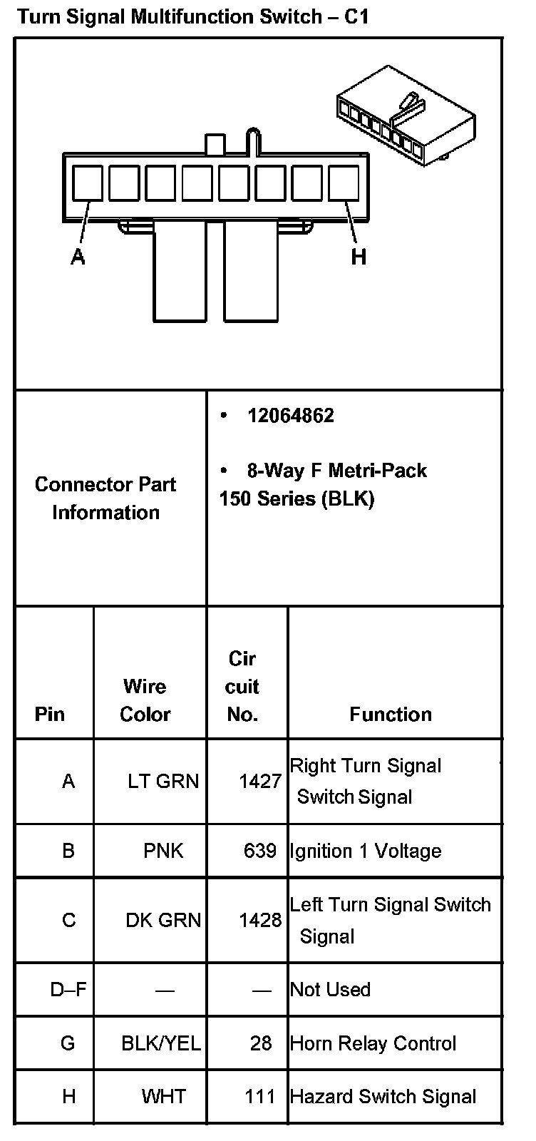 Turn Signal Multifunction Switch - C1:
