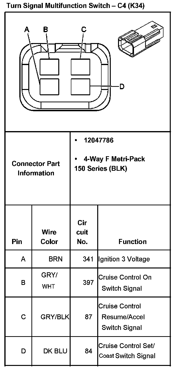 Turn Signal Multifunction Switch - C4 (With RPO Code K34):