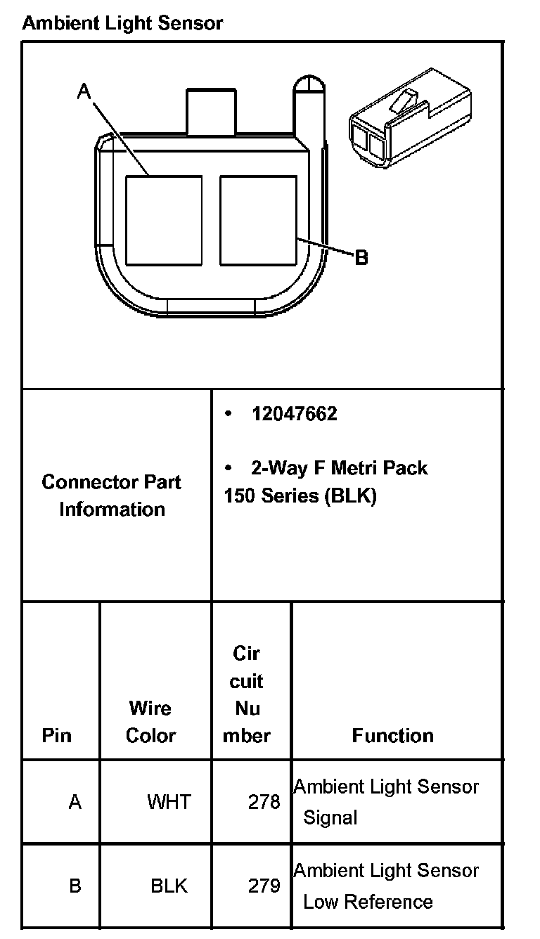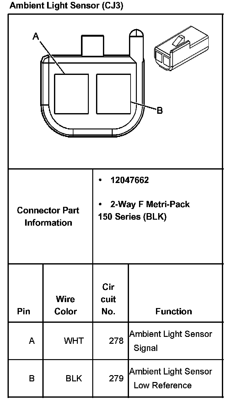 Ambient Light Sensor (With RPO Code CJ3):
