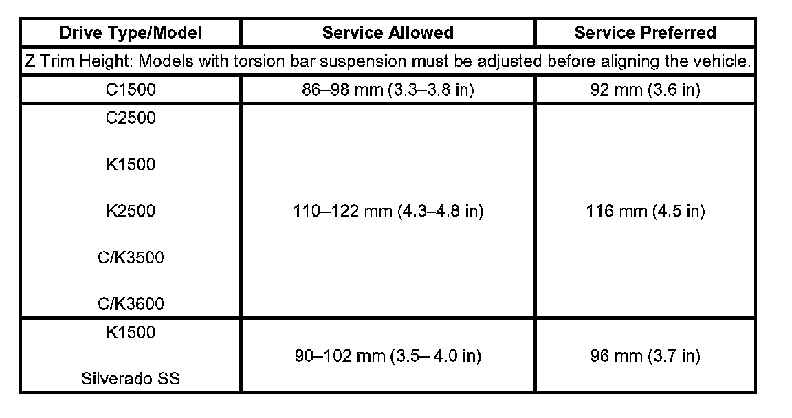 Trim Height Specifications