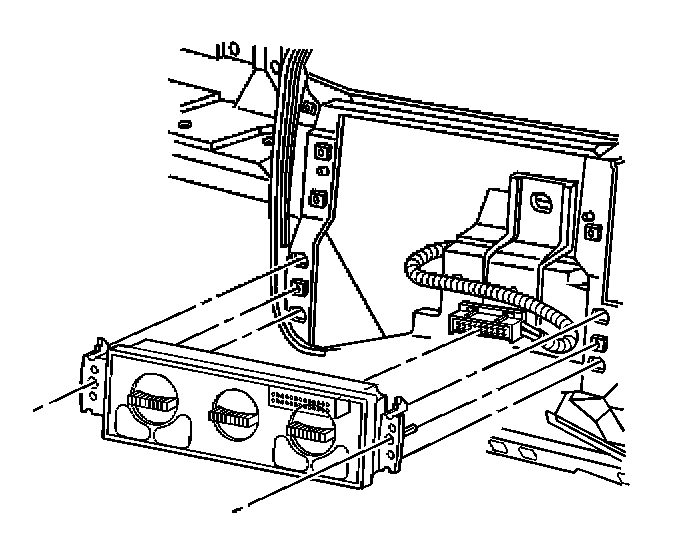 3. Depress the control assembly retaining tabs and remove the HVAC control module from the instrument panel.