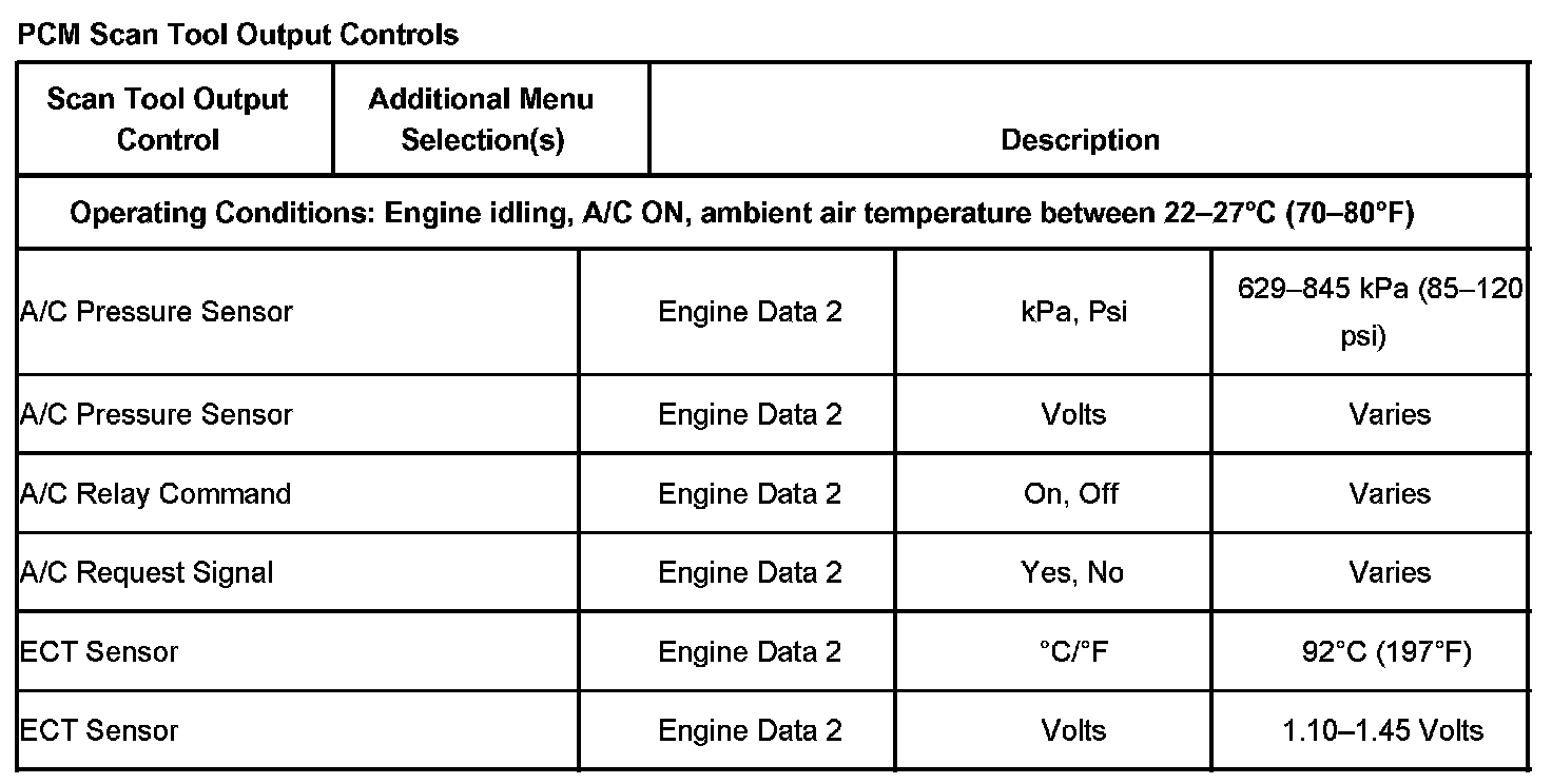 Scan Tool Data List - Powertrain Control Module (PCM)