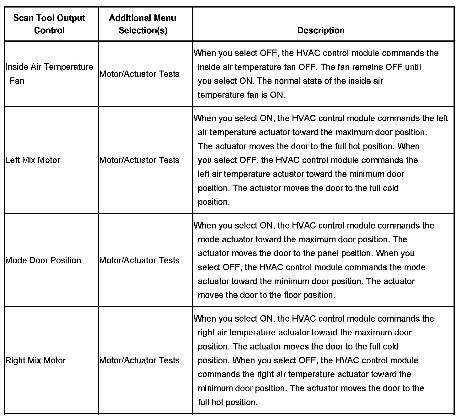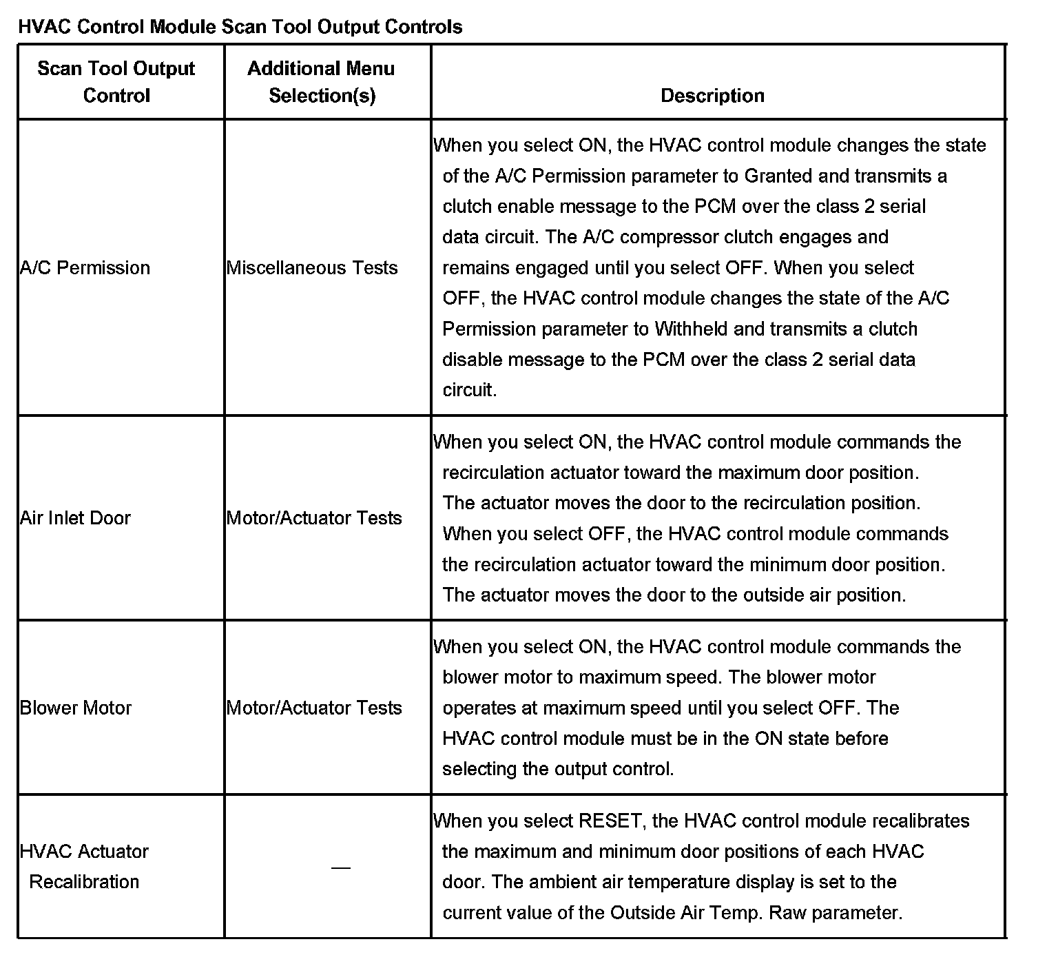Scan Tool Output Controls - HVAC Control Module