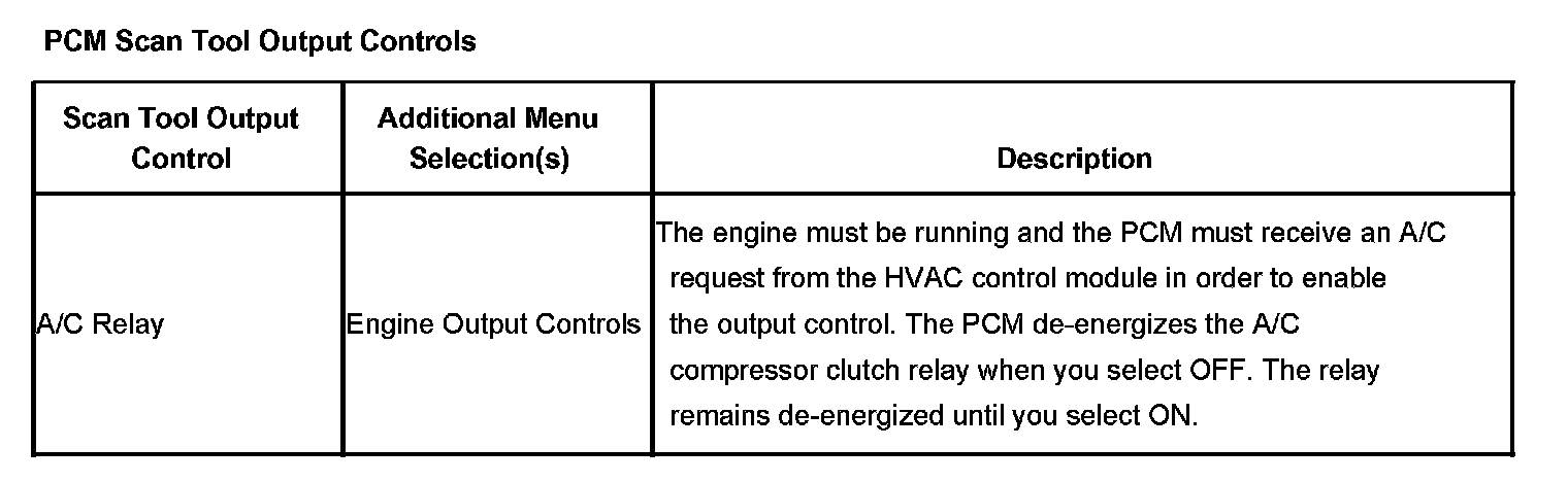 Scan Tool Output Controls - Powertrain Control Module (PCM)