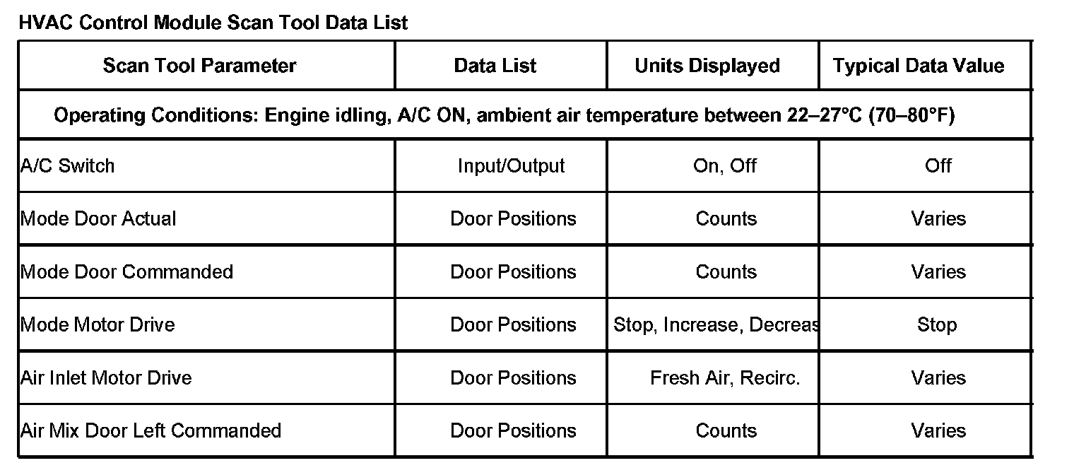 Scan Tool Data List - HVAC Control Module