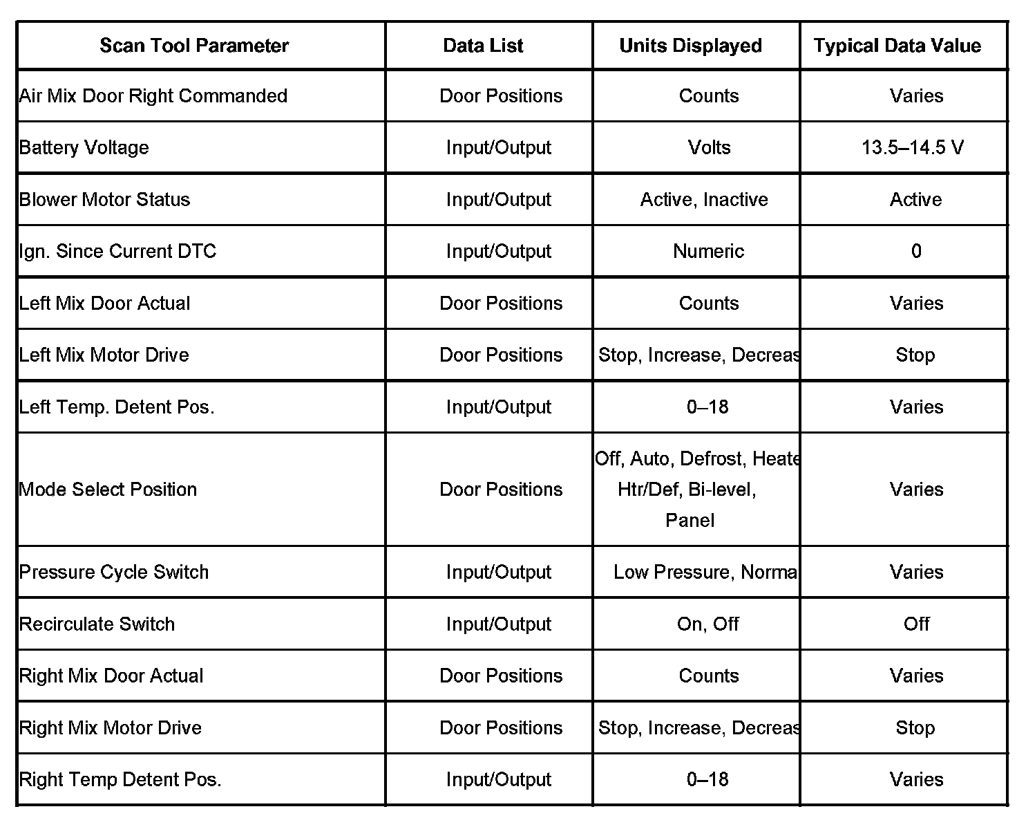 HVAC Control Module Scan Tool Data List Part 1: