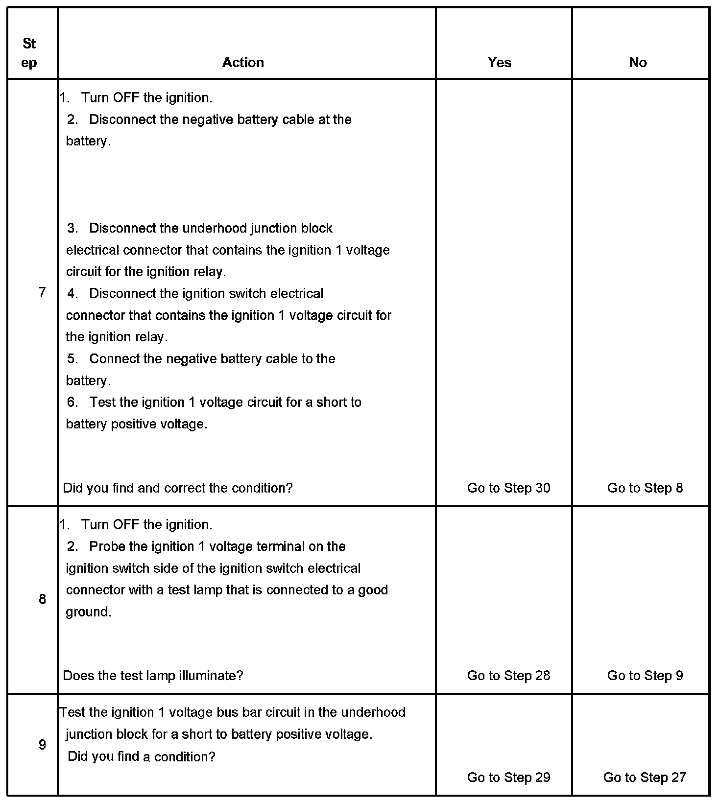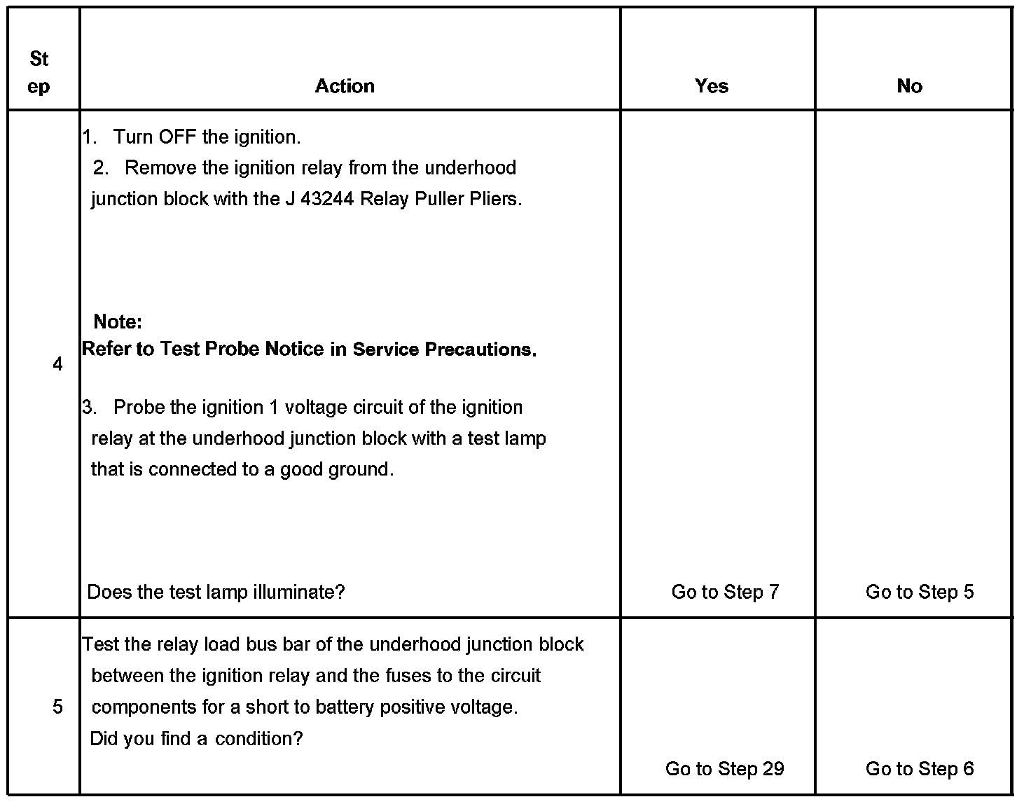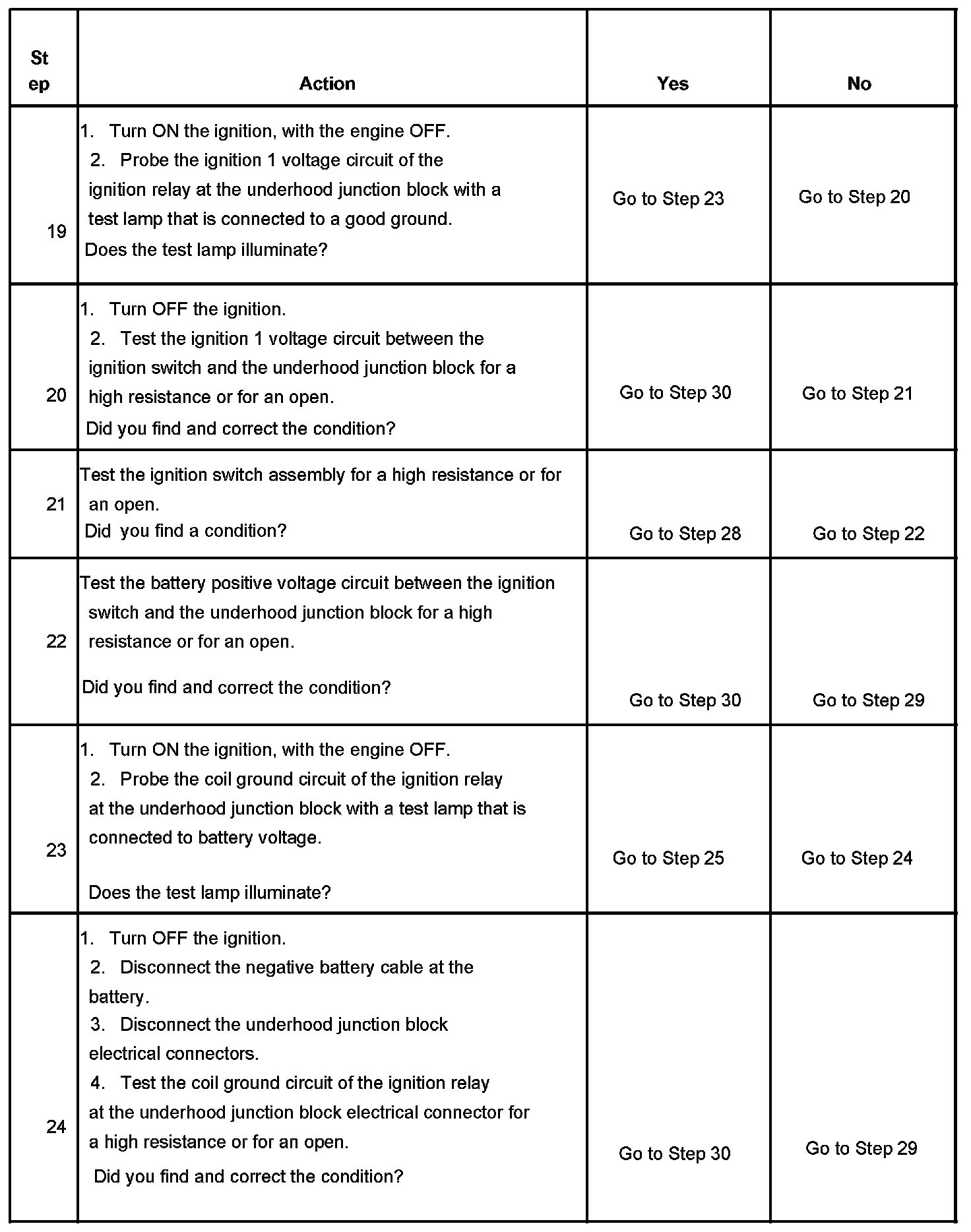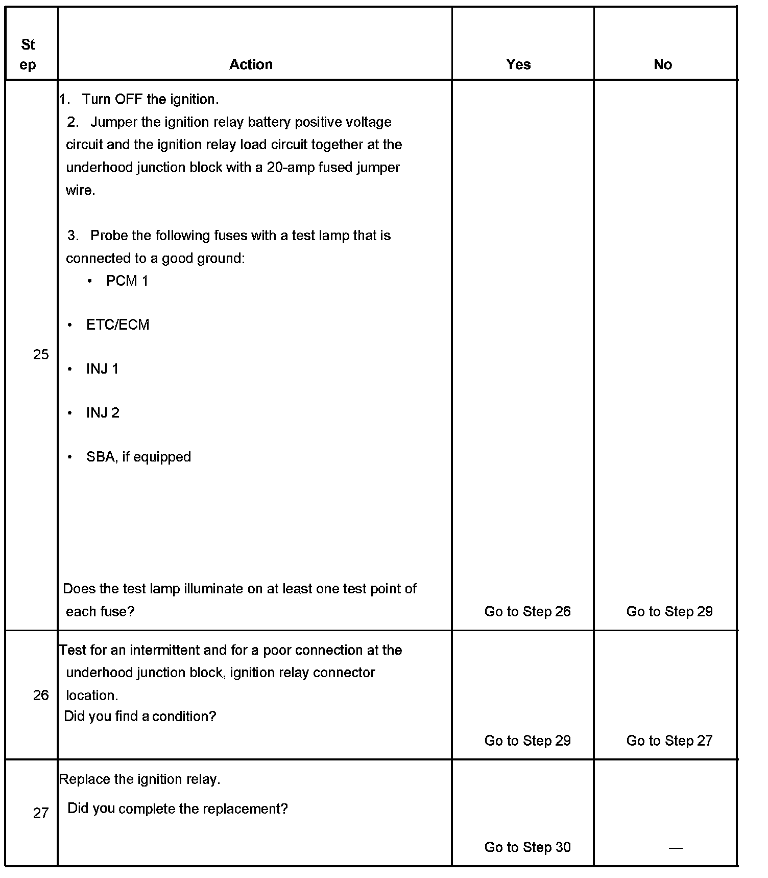 The ignition relay table assumes that the vehicle battery is fully charged.
