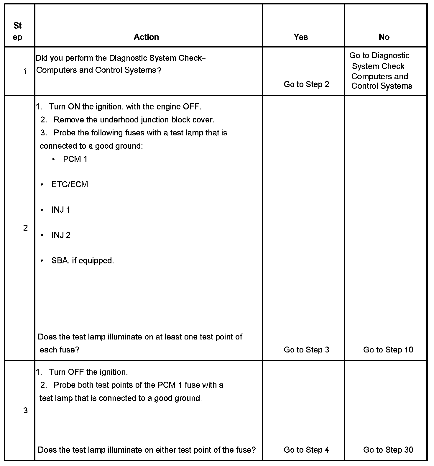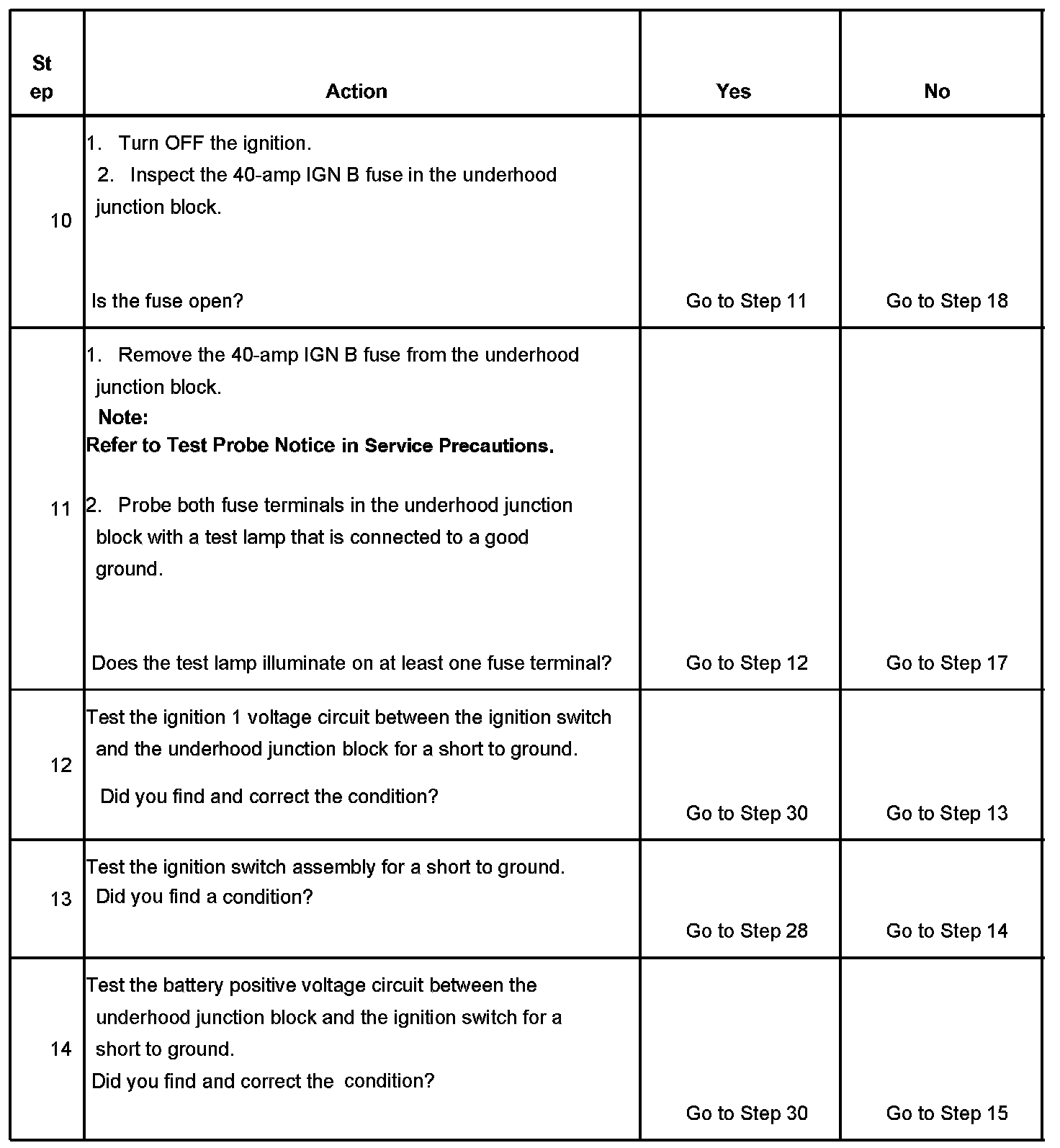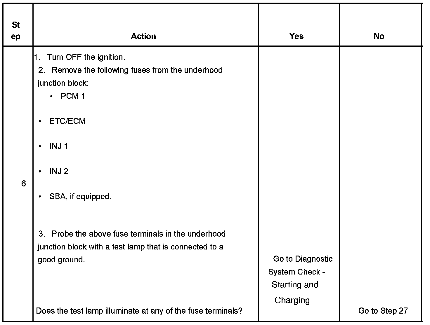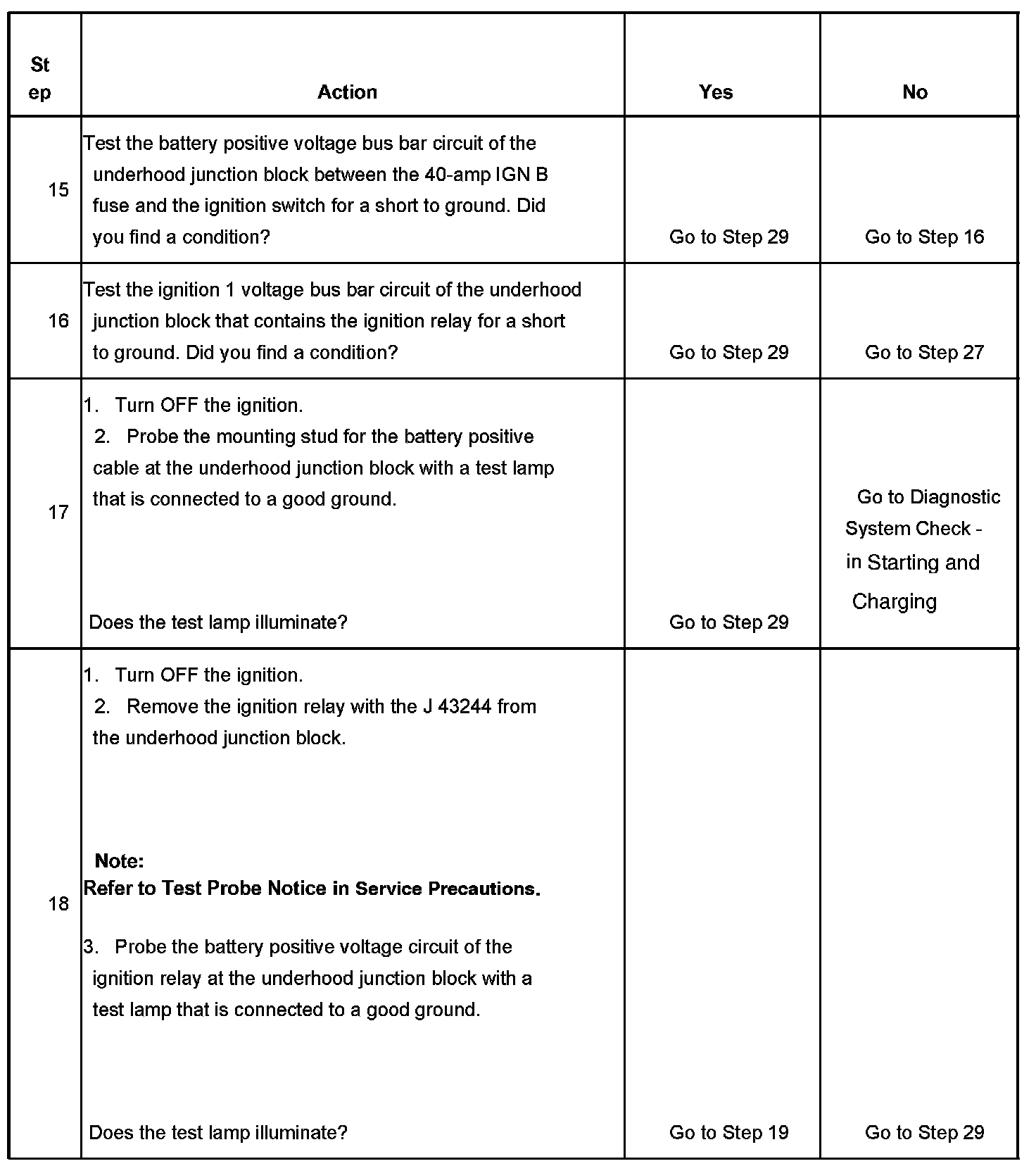 The ignition relay table assumes that the vehicle battery is fully charged.
