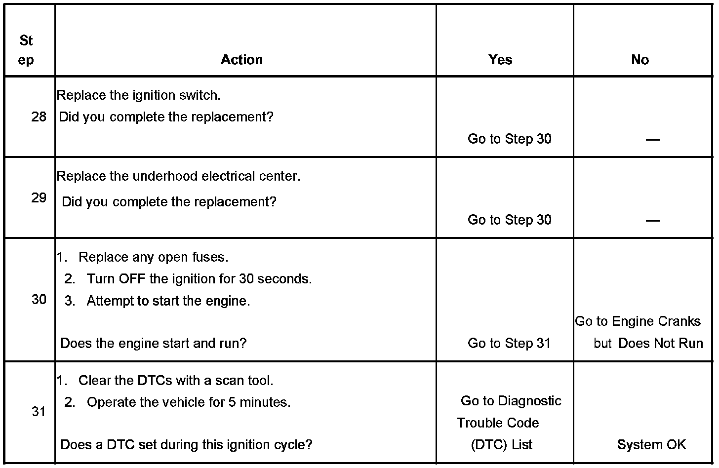 If the ignition relay fails to close, the engine will crank, but will not run. The class 2 communications will be available with the use of a scan tool.