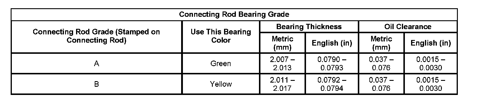Connecting Rod Bearings Selection Specifications: