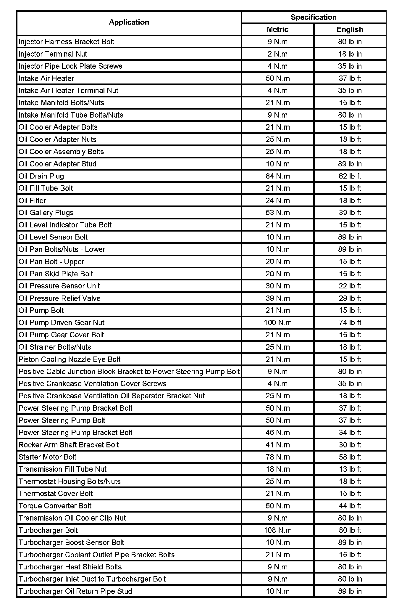 Fastener Tightening Specifications