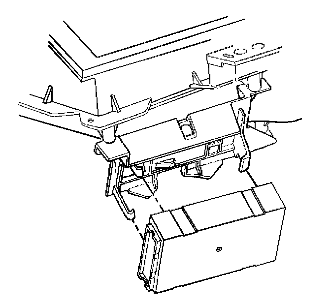 1. Install the body control module to the bracket at an angle under the wide hook retainer, with the label facing away from the bracket.