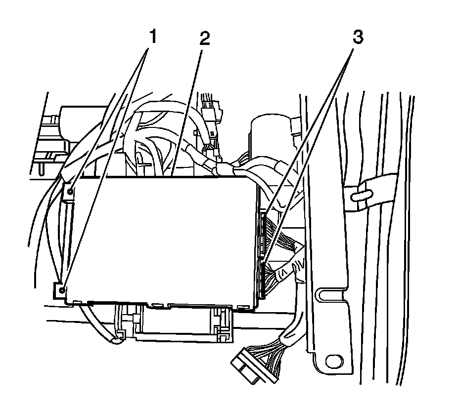 3. Remove the module (2) retaining screws (1).