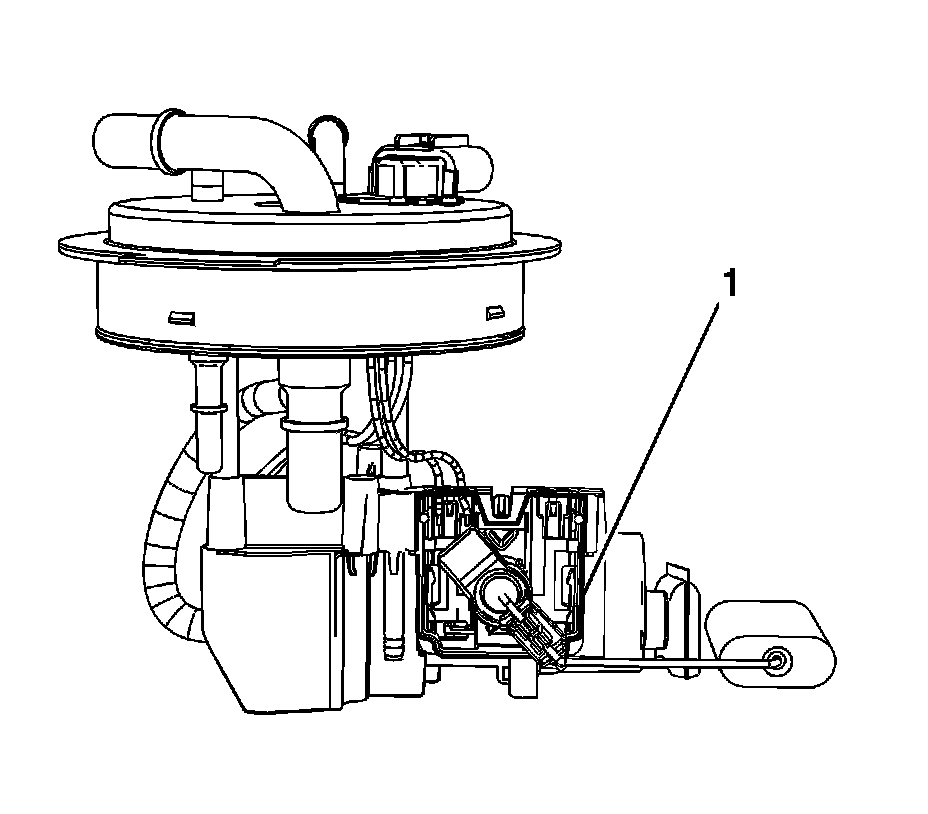 4. Squeeze the locking tangs together, and remove the fuel level sensor (1).