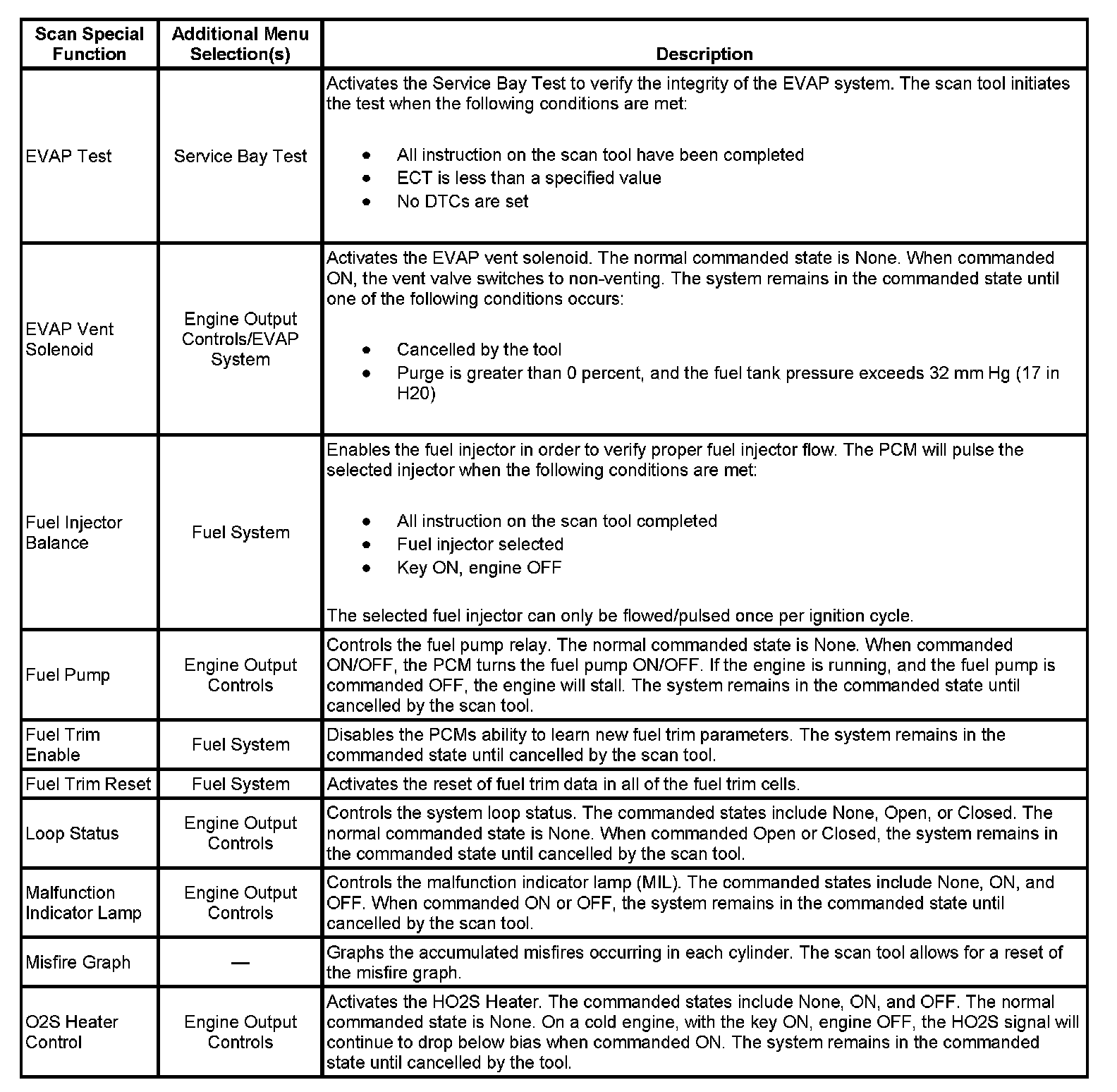 Scan Tool Output Controls