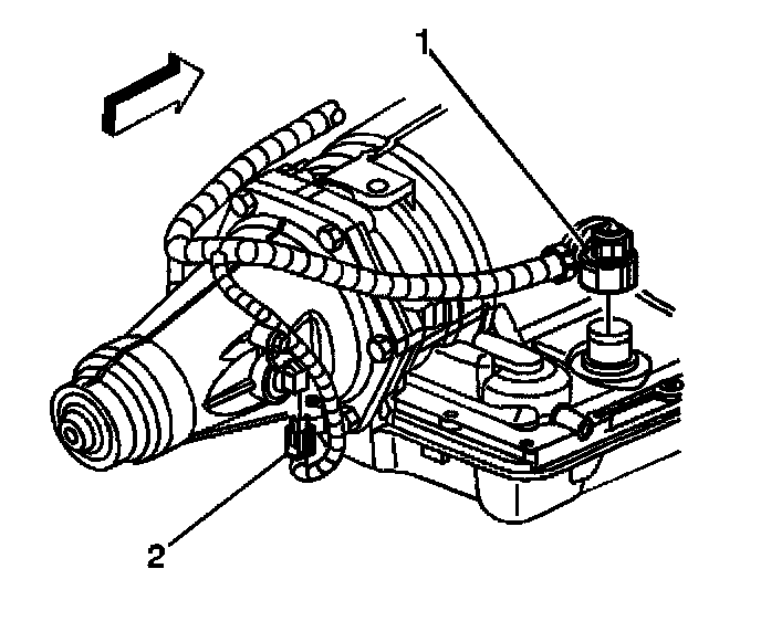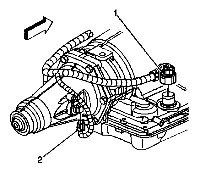 2. Disconnect the vehicle speed sensor (VSS) electrical connector (2).