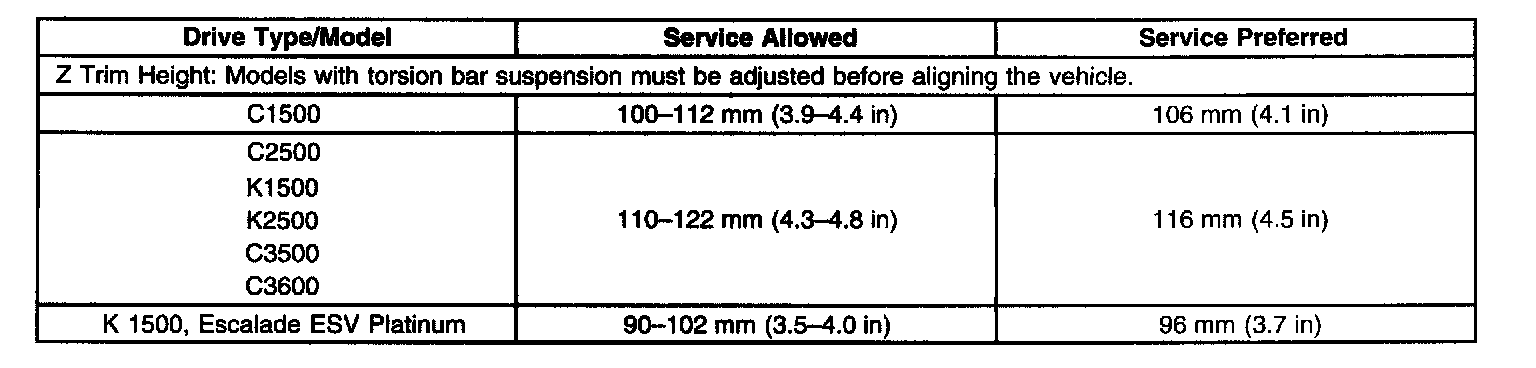 Trim Height Specifications: