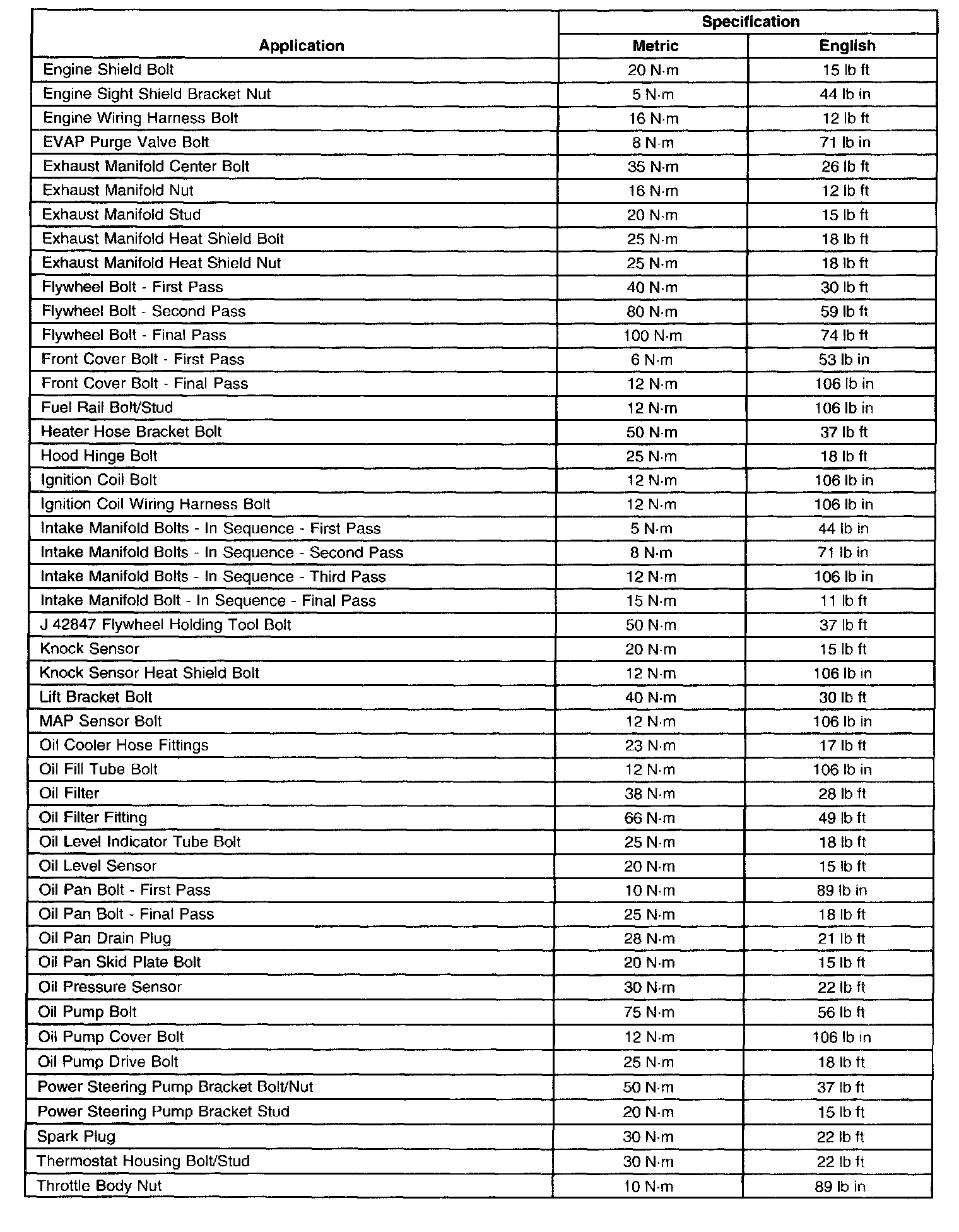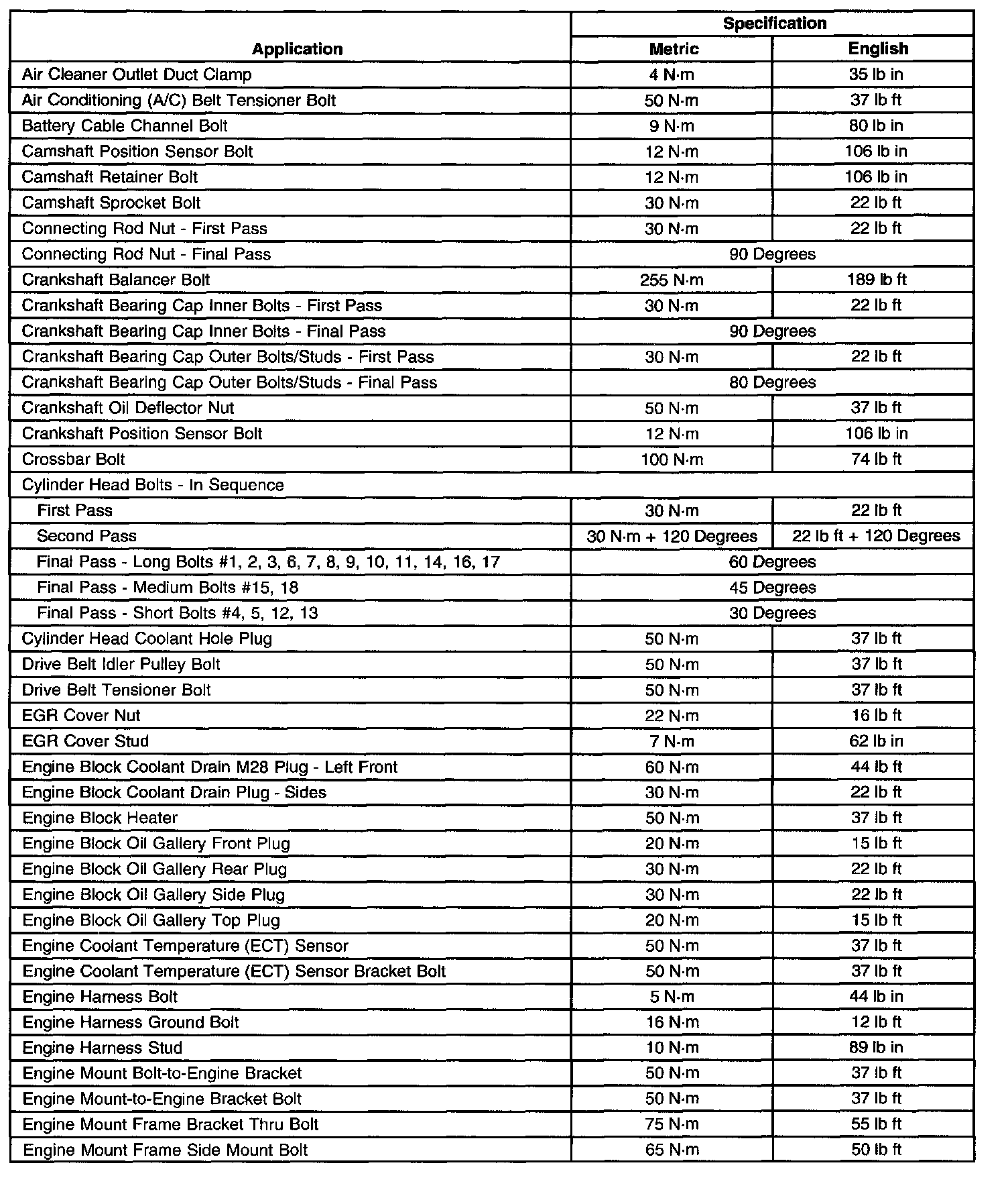 Torque Specifications