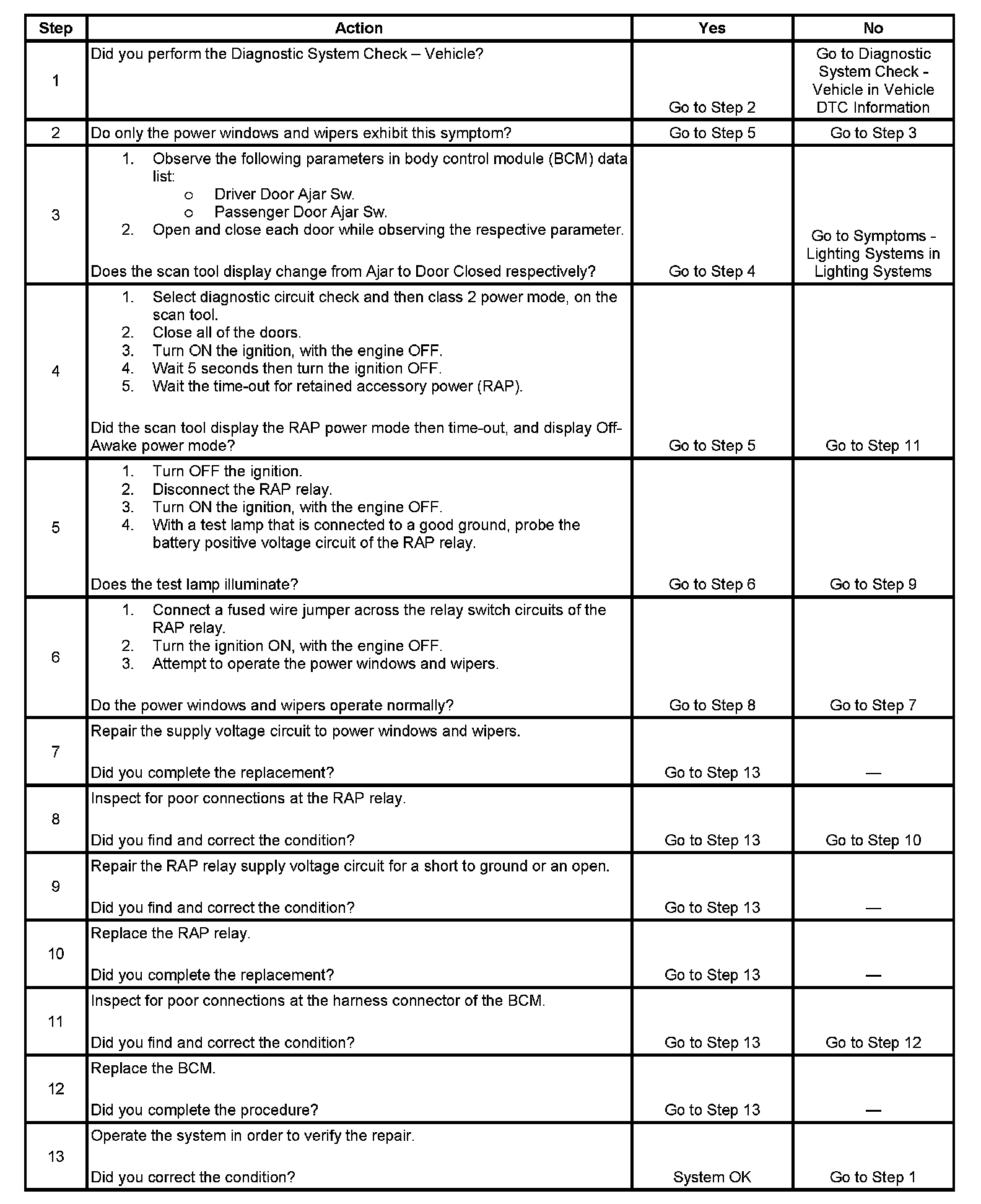 Retained Accessory Power (RAP) Inoperative