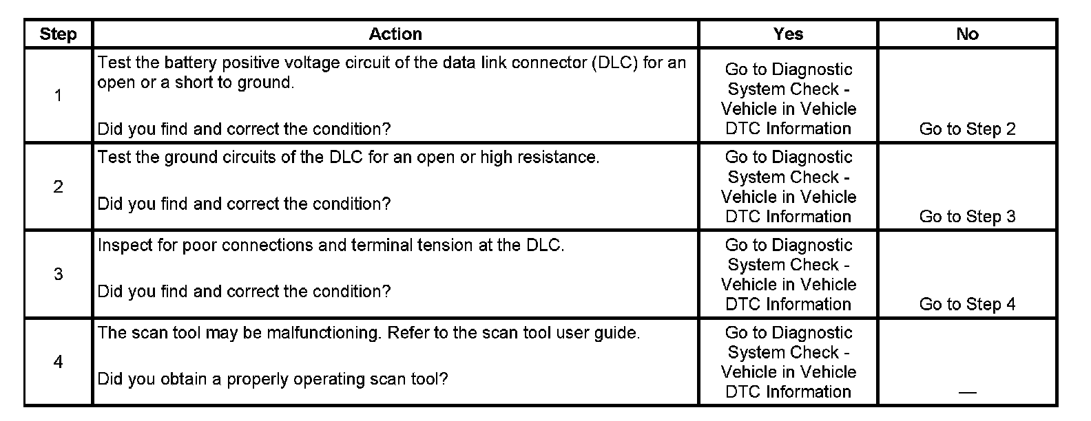 4. If the battery positive voltage and ground circuits of the DLC are functioning properly. The malfunction must be due to the scan tool.