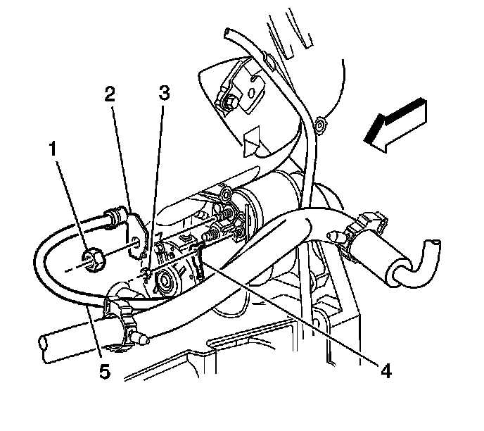 12. Open the battery cables harness retainer (5) at the engine wiring harness bracket (1).