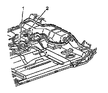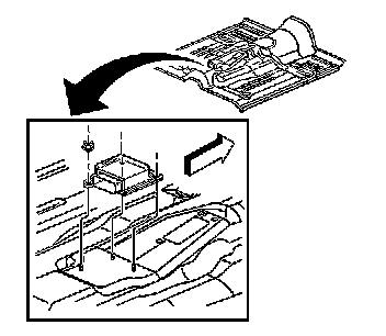 3. Partially remove the console mounting bracket in order to allow access to the rear carpet. Refer to Bracket Replacement - Console Floor in Instrument Panel, Gages, and Console.
