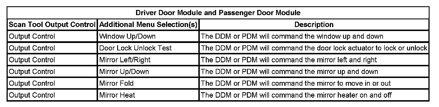 Scan Tool Output Controls - Driver Door Module and Passenger Door Module