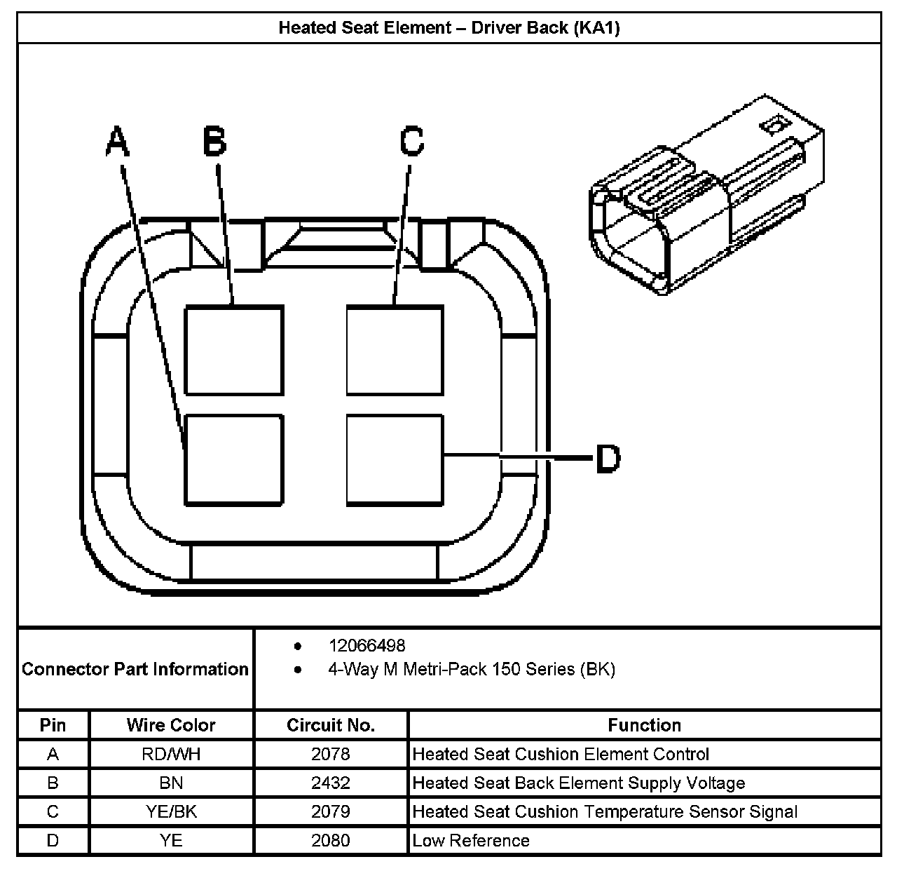 Heated Seat Element - Driver Back (With RPO Code KA1):