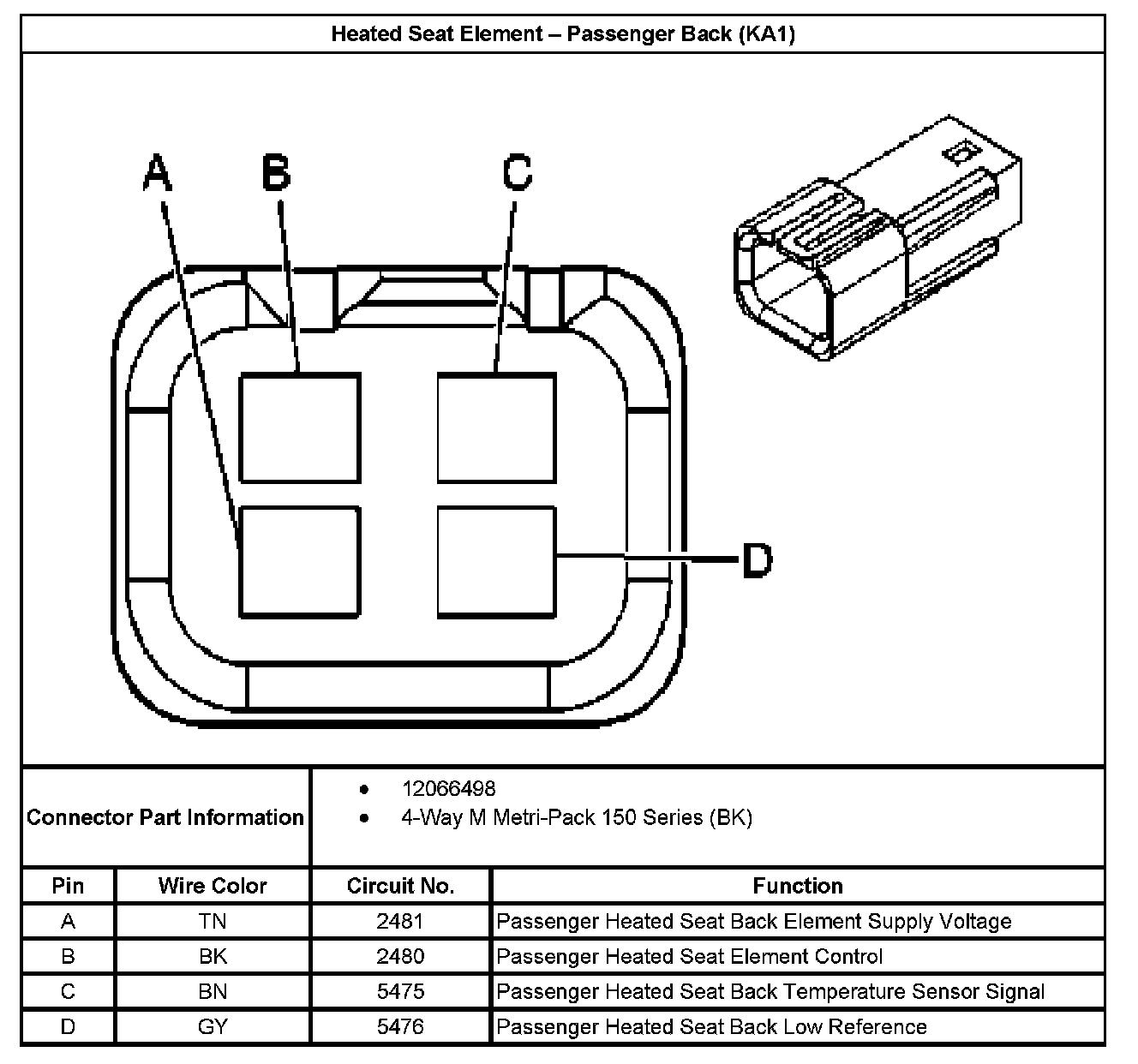 Heated Seat Element - Passenger Back (With RPO Code KA1):