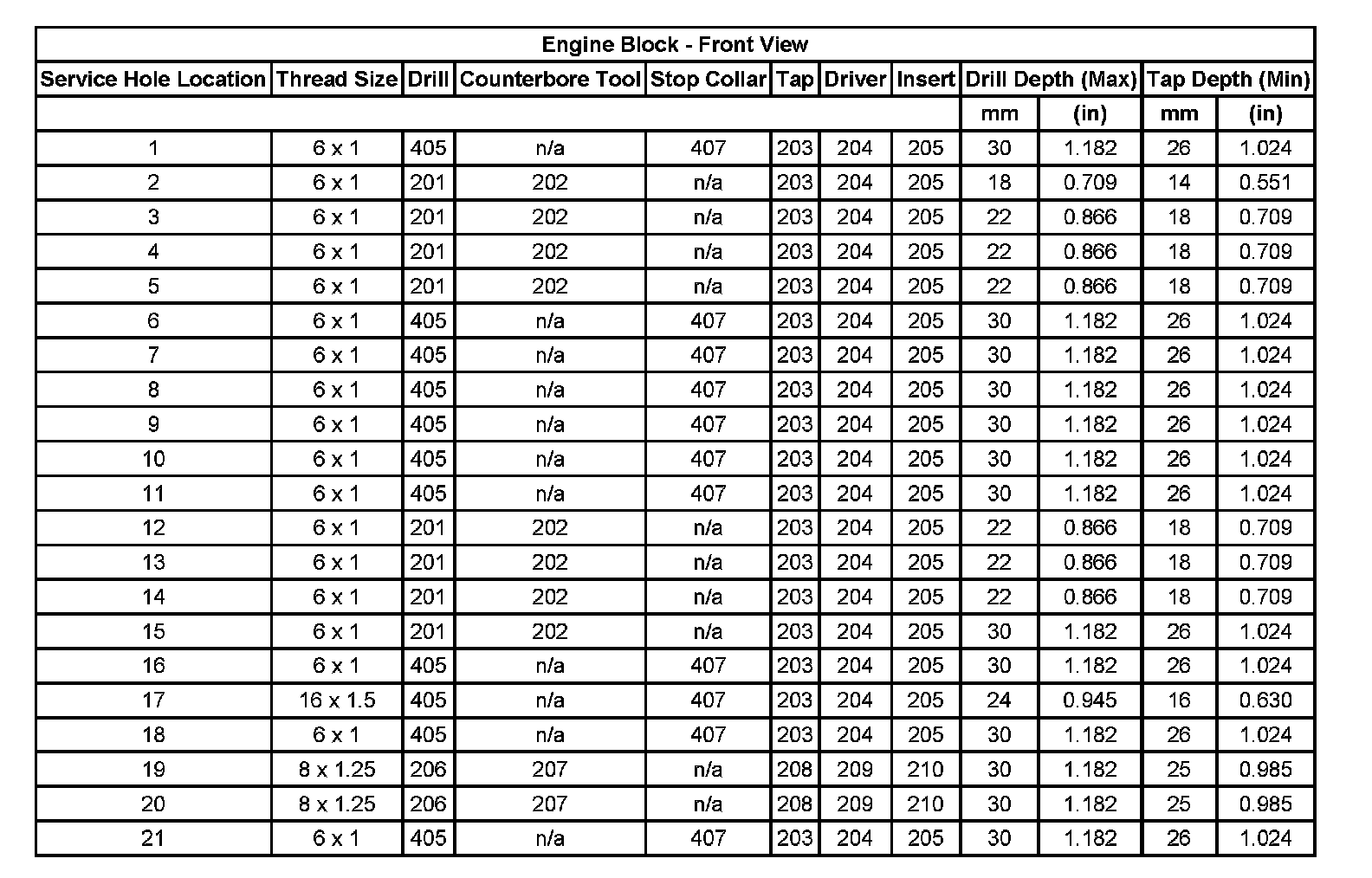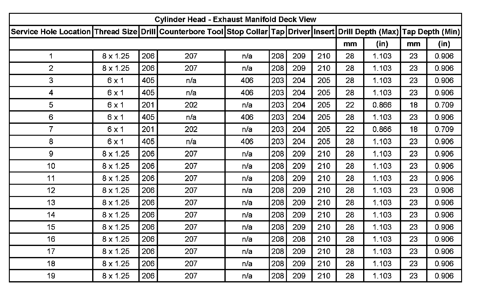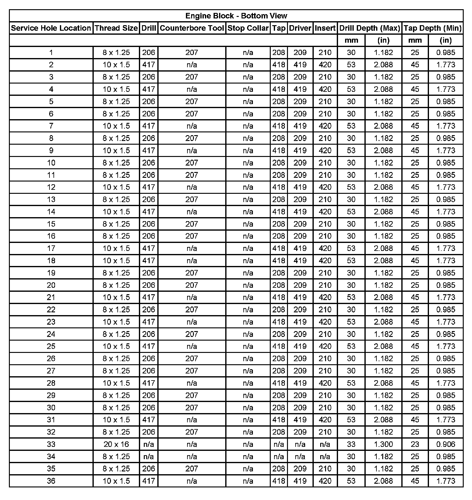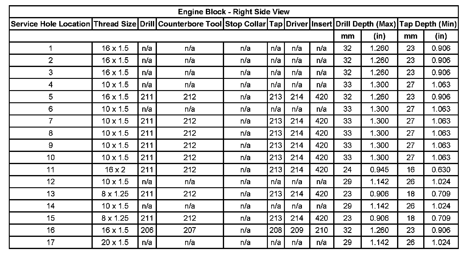 Thread Repair Specifications