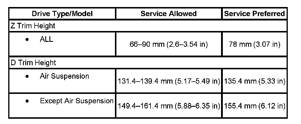Trim Height Specifications