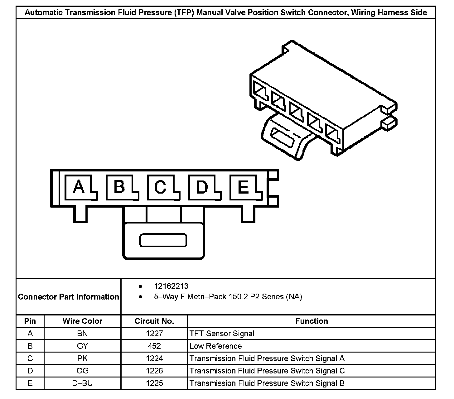 Automatic Transmission Fluid Pressure (TFP) Manual Valve Position Switch Connector, Wiring Harness Side: