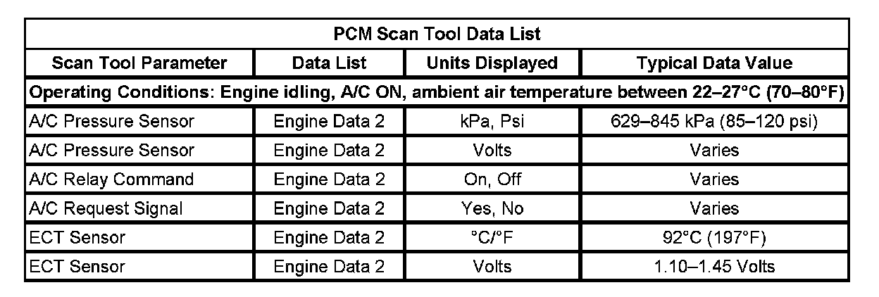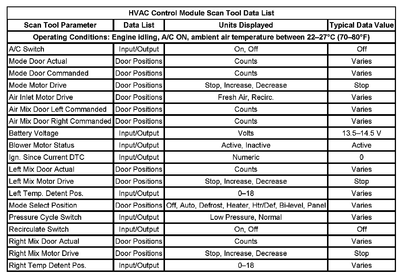 HVAC Control Module Scan Tool Data List: