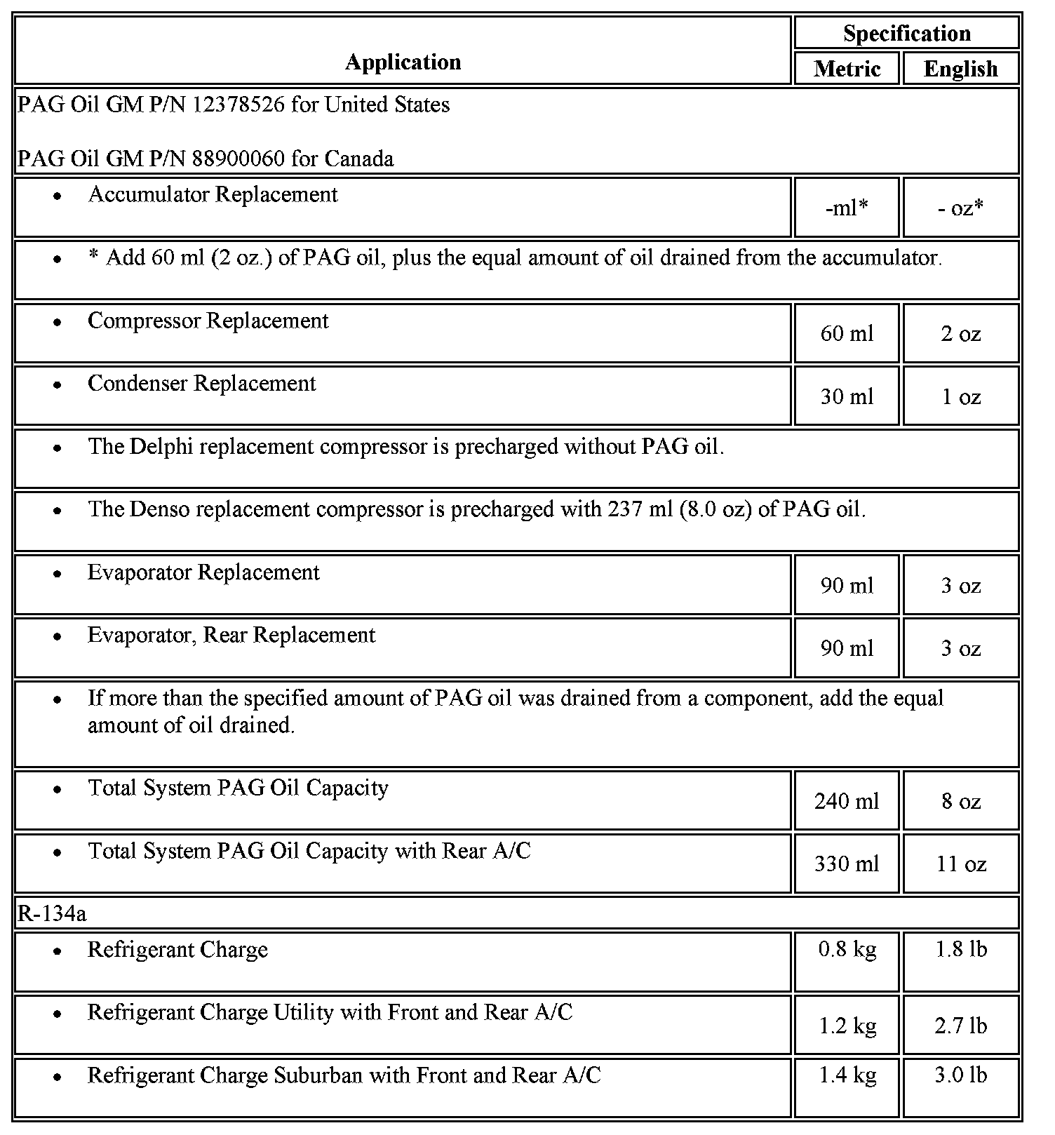 Capacity Specifications
