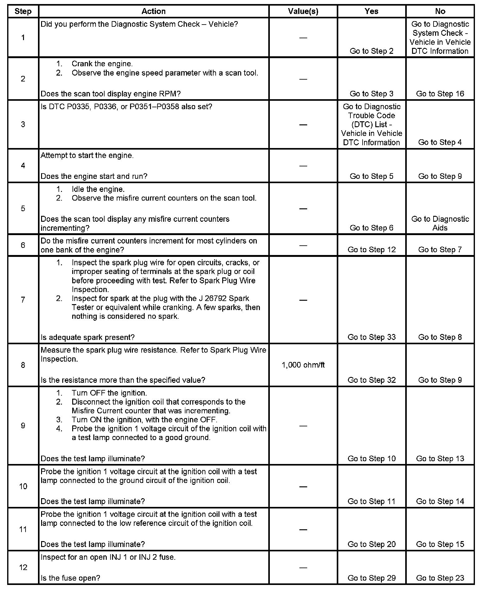 12. A good indication that the fuse is open is all off the misfire current counters are incrementing on one side of the engine. Inspect the ignition positive voltage circuit for a grounded circuit. If the fuse is open and the ignition coil circuits are OK, inspect the injector circuits for being grounded.